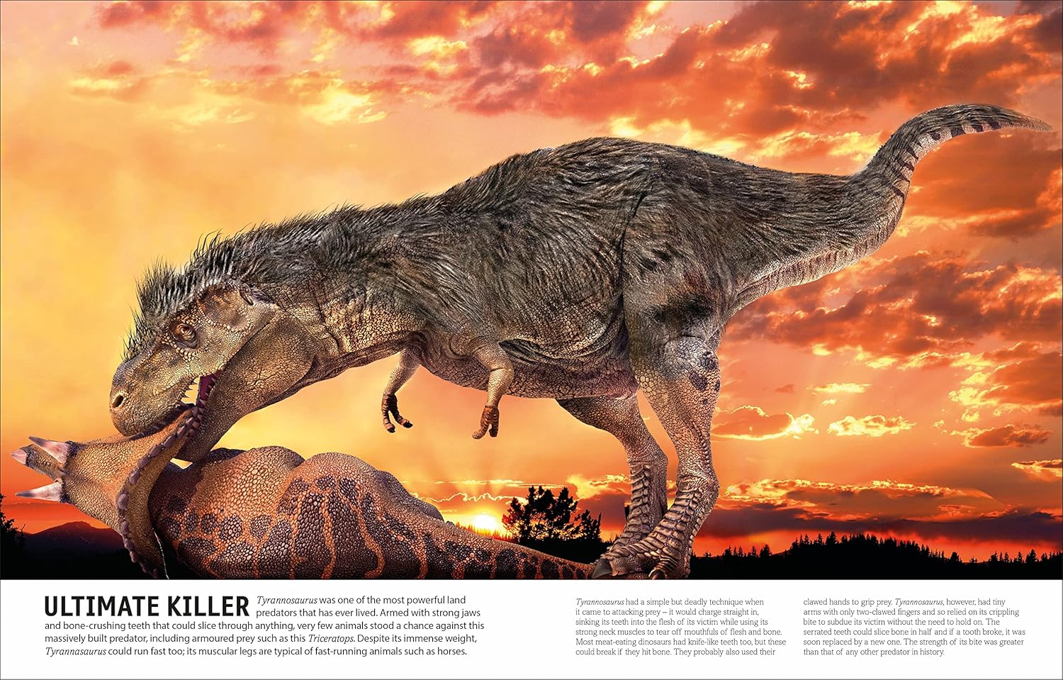 Featuring fossil fragments, full skeletons, and CGI renderings of dinosaurs – from the deadly Tyrannosaurus to the plant-eating Diplodocus, armored fish to giant millipedes and terrifying sharks and so much more, this dazzling dinosaur book is a must-have volume for young dinosaur enthusiasts.