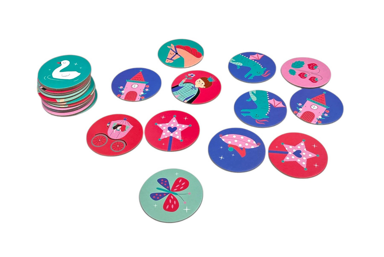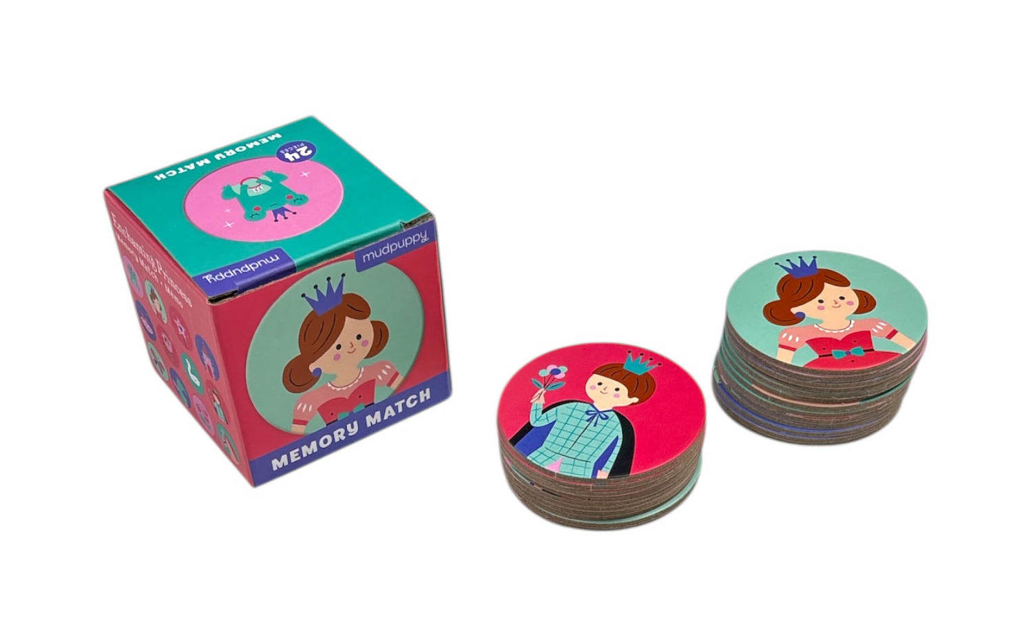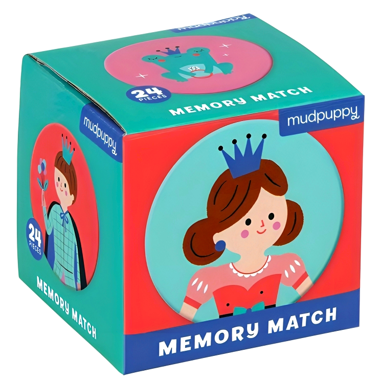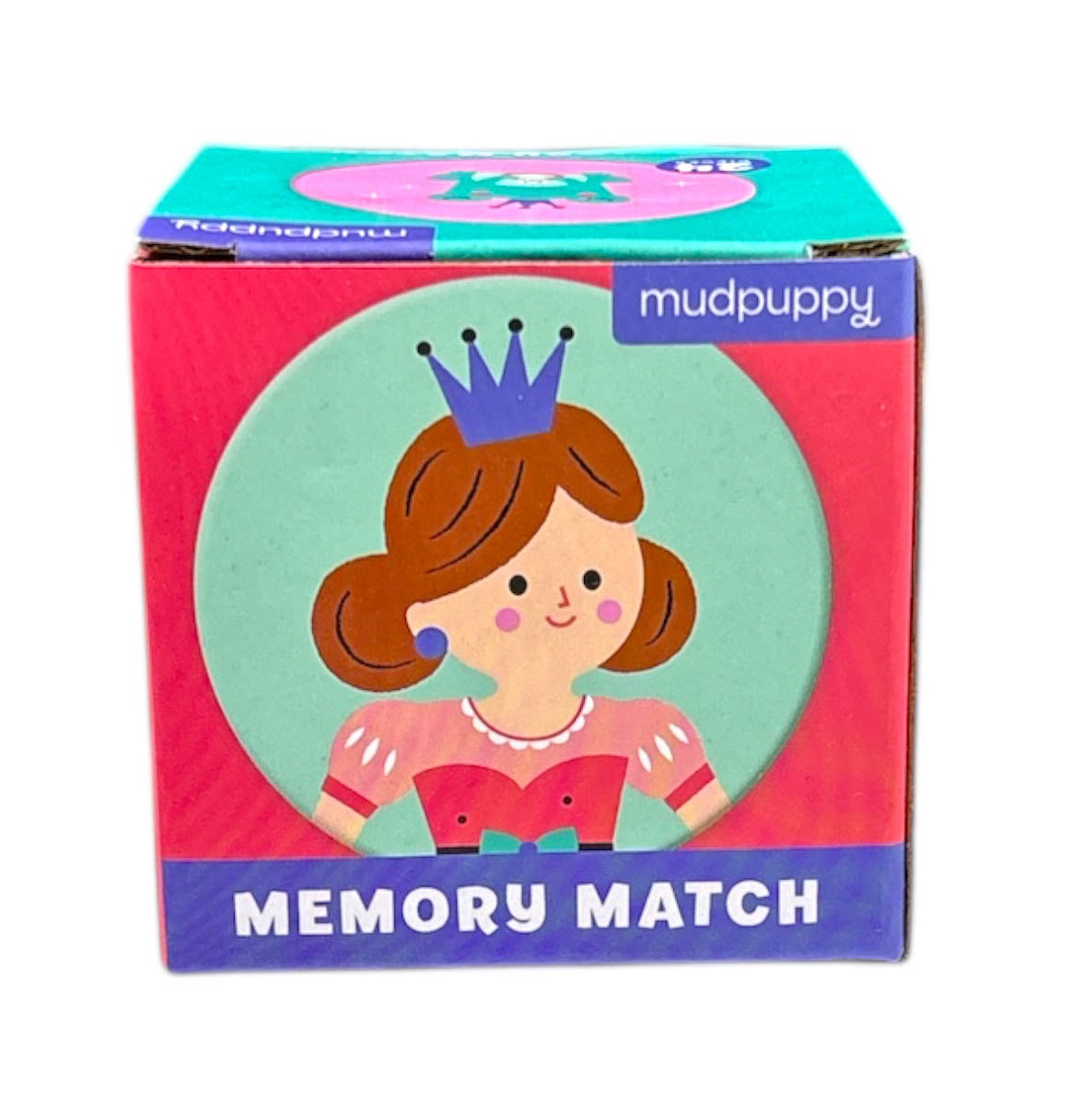 Test your little ones' memory with the Enchanting Princess Mini Memory Game by Mudpuppy, which includes 12 pairs of cards featuring different, fun storybook characters. Perfect for traveling or keeping with you for anytime play.