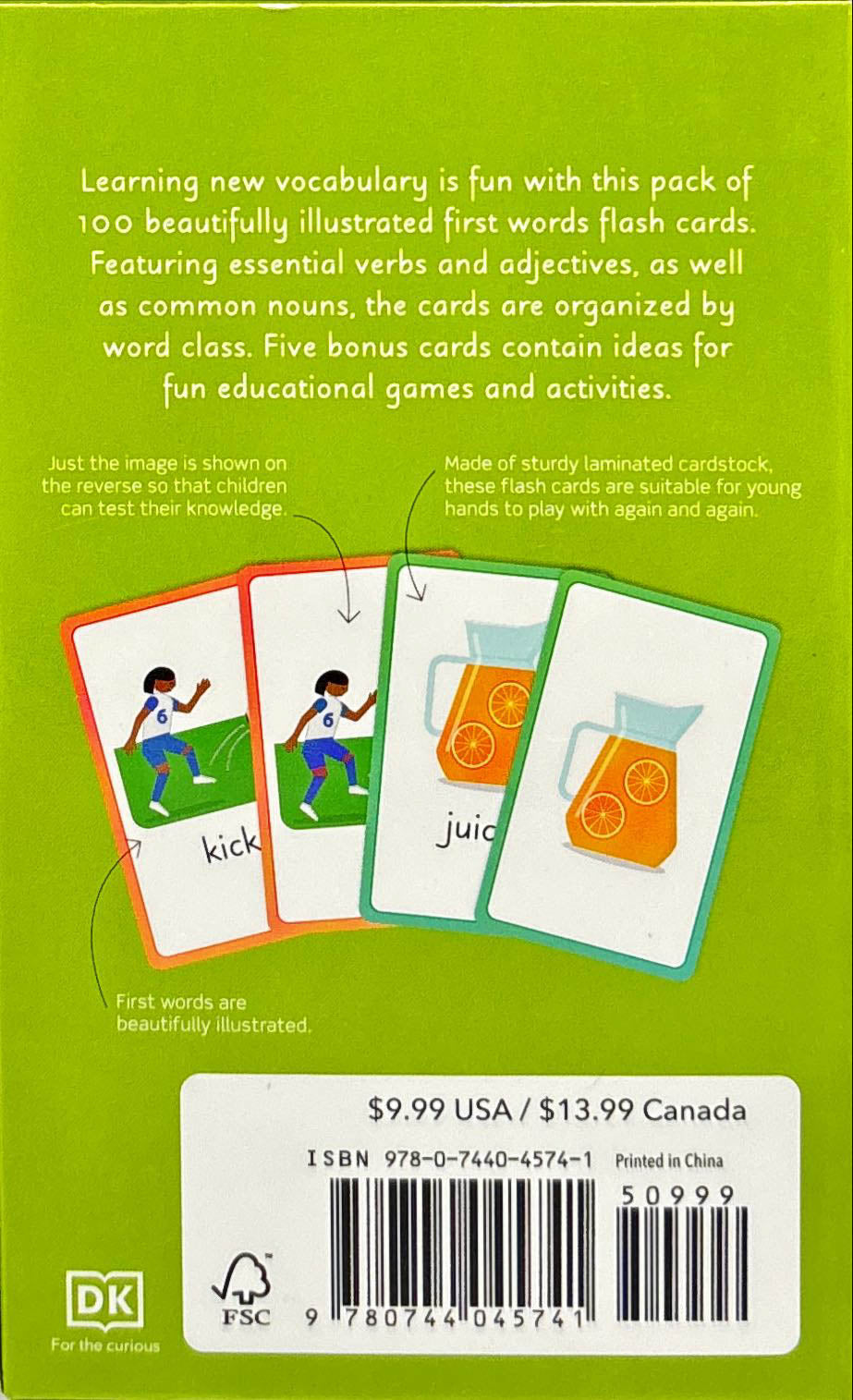 Make learning new vocabulary fun with these beautifully illustrated flash cards. Introducing 100 essential first words with accompanying audio, these cards are perfect for children beginning to learn English as a second language.
