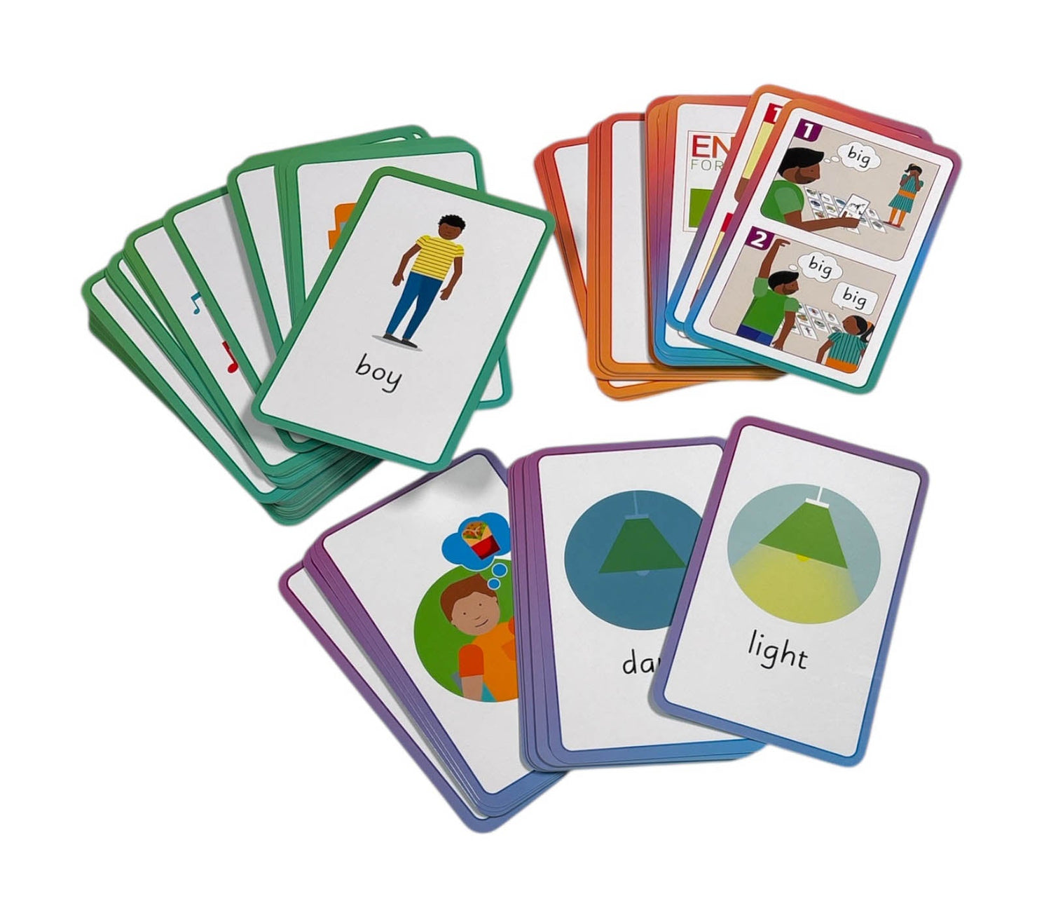A set of 100 beautifully illustrated flash cards, with accompanying audio, for children learning to read and speak English.