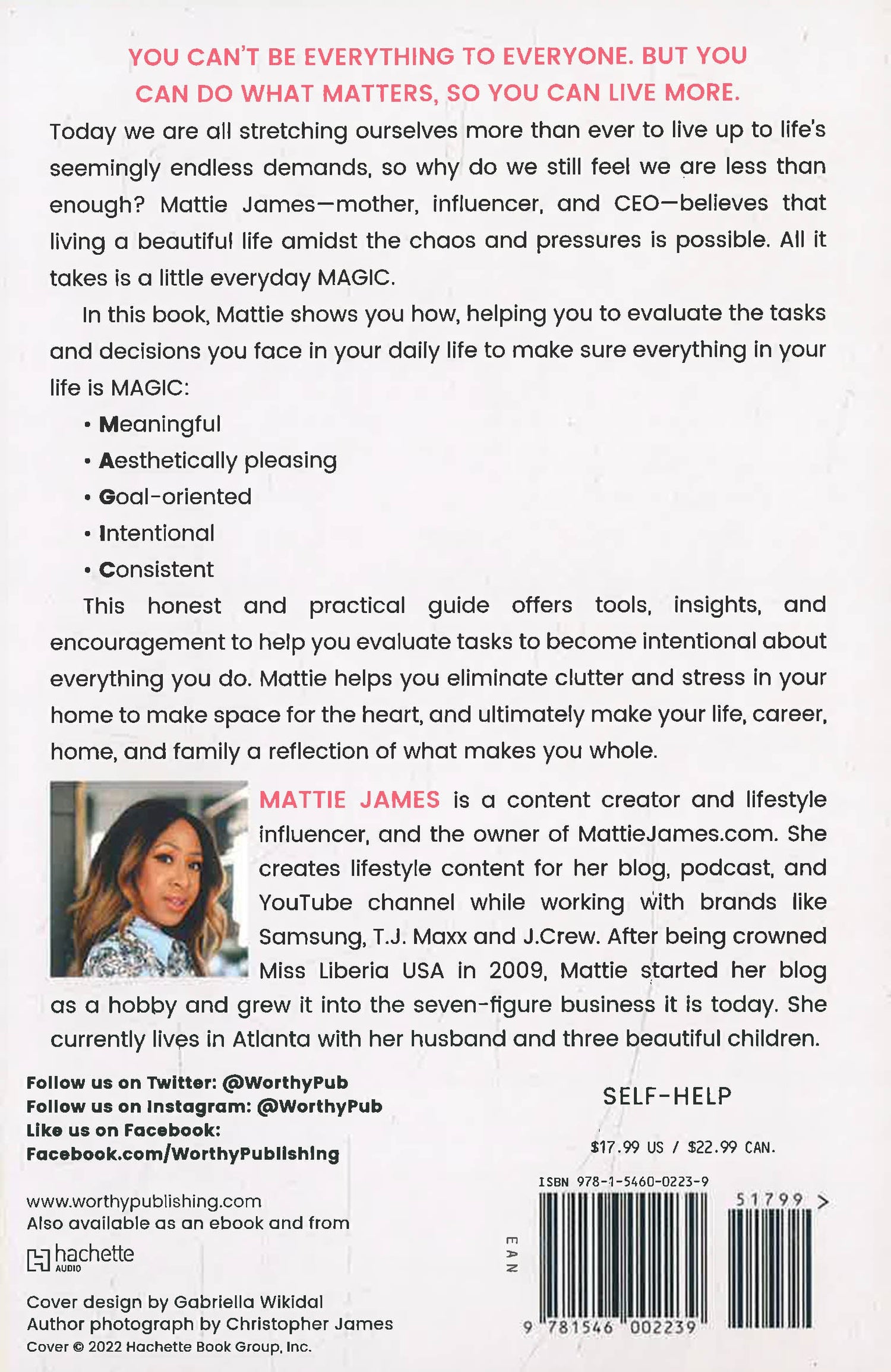 Today we are all stretching ourselves more than ever to live up to life's seemingly endless demands, so why do we still feel we are less than enough? Mattie James- mother, influencer, and CEO-believes that living a beautiful life amidst the chaos and pressures is possible. All it takes is a little everyday MAGIC.