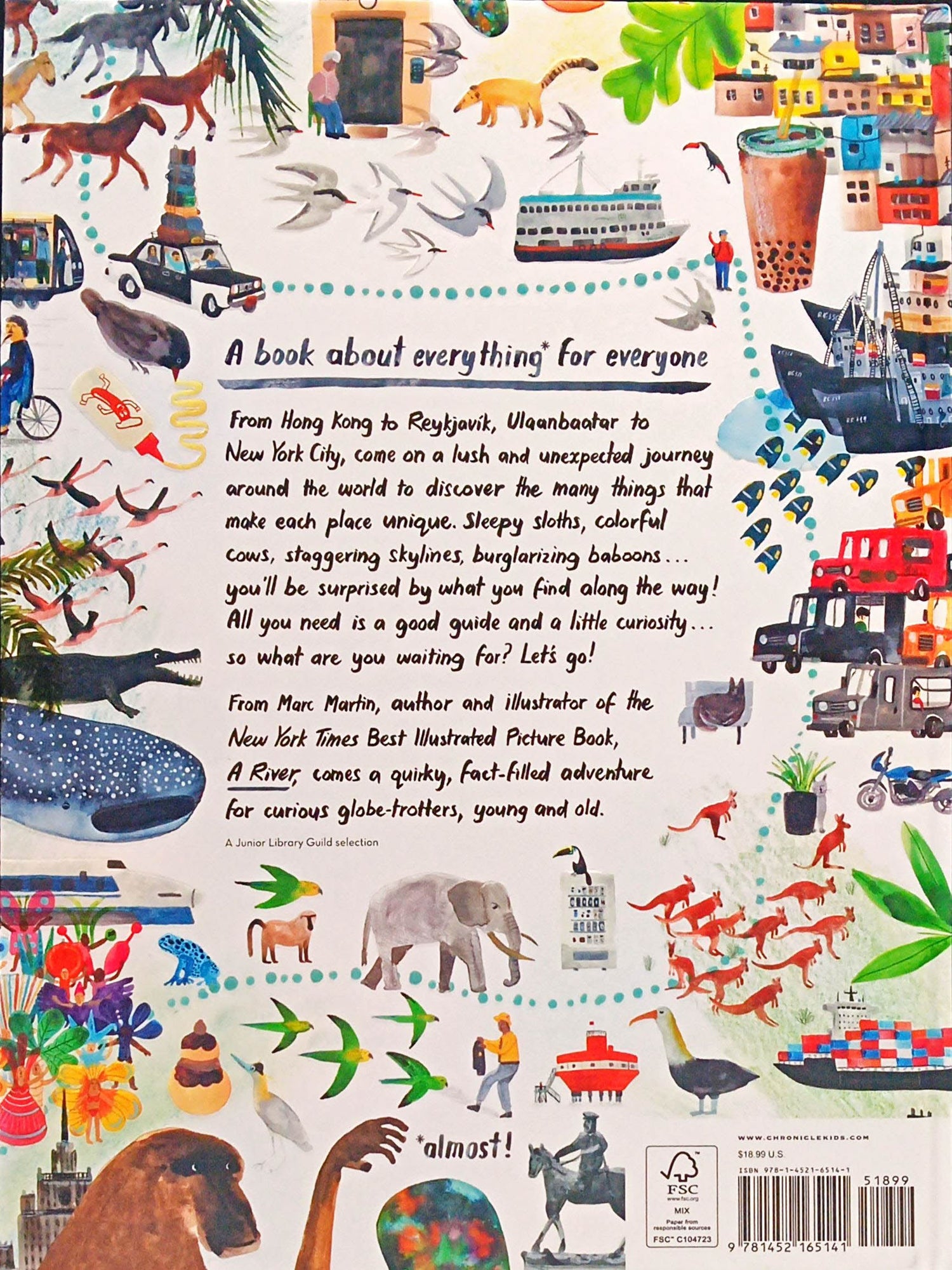 From Hong Kong to Reykjavik, Ulaanbaatar to New York City, this beautifully illustrated, fact-filled adventure book will take curious kids on a lush and unexpected journey around the globe to discover what makes each place unique. Sleepy sloths, colorful cows, staggering skylines, and terrible traffic—countless surprises await globetrotting children of all ages. All you and your child need is a good travel guide and a big imagination. Let's go!