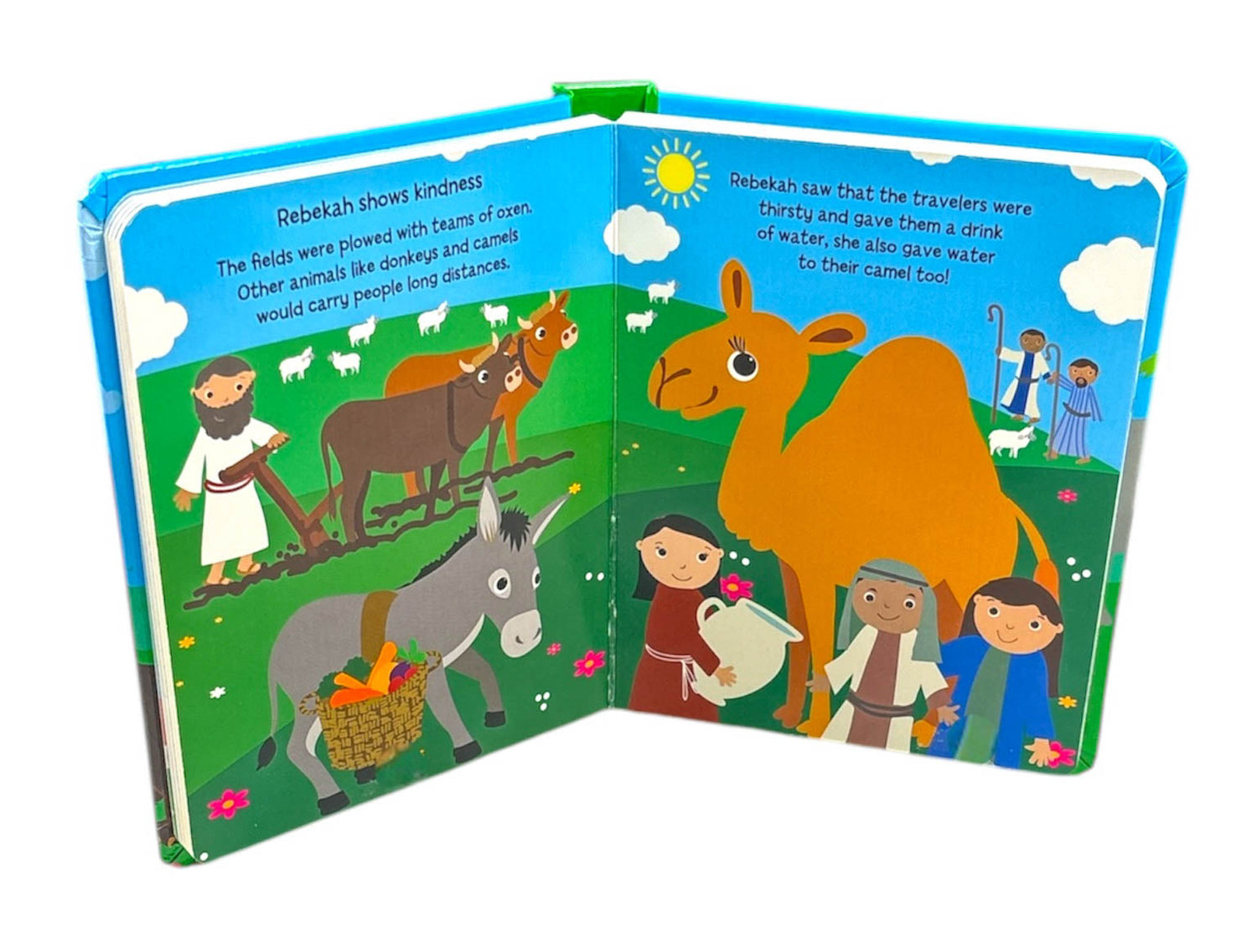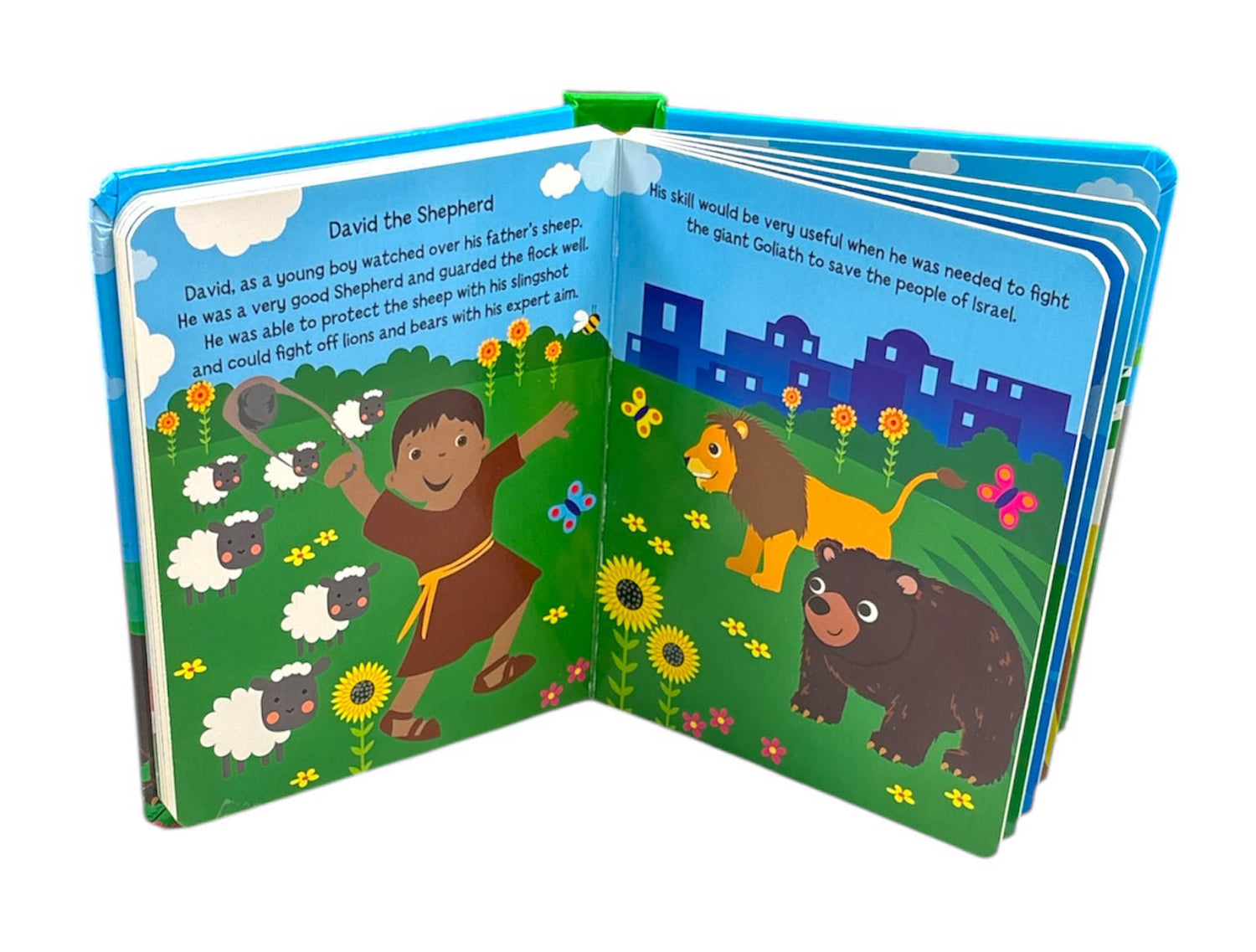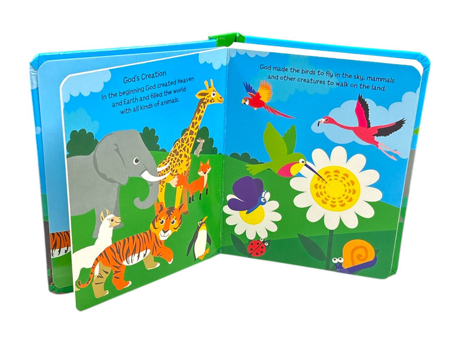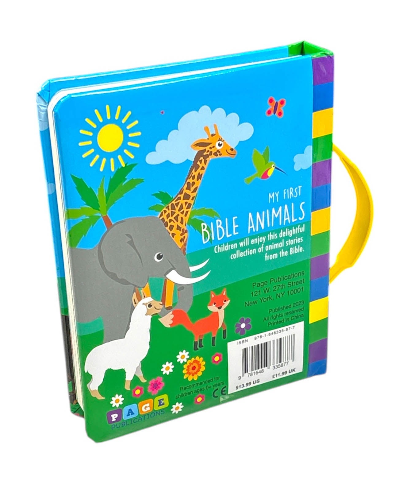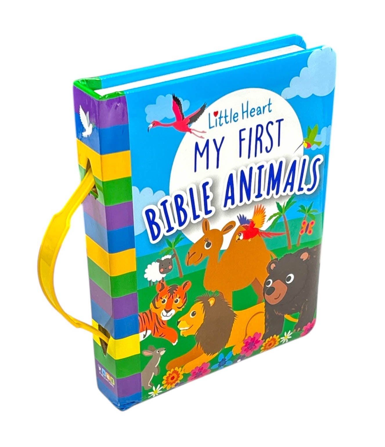 "Little Heart: My First Bible Animals" is a padded board book with a convenient carrying handle, perfect for little hands to take along to church, Sunday school, or any adventure. This delightful book introduces young children to various animals found in the Bible, pairing each animal with a simple Biblical story and vibrant illustrations. The padded cover and sturdy pages ensure durability for repeated readings, making it an ideal addition to any child's early learning and faith journey. This book encourages young readers to connect with Biblical teachings through the engaging theme of animals.