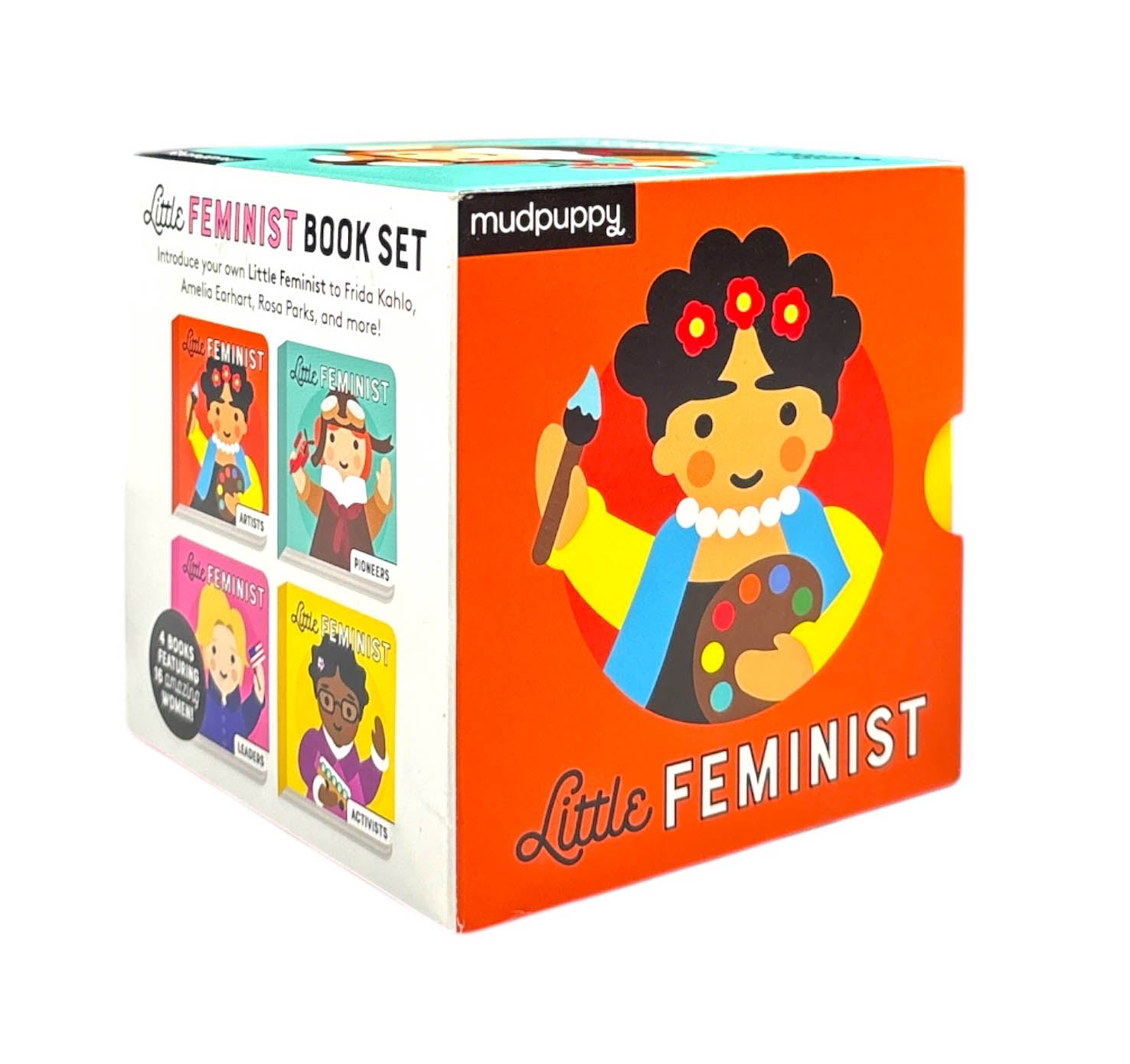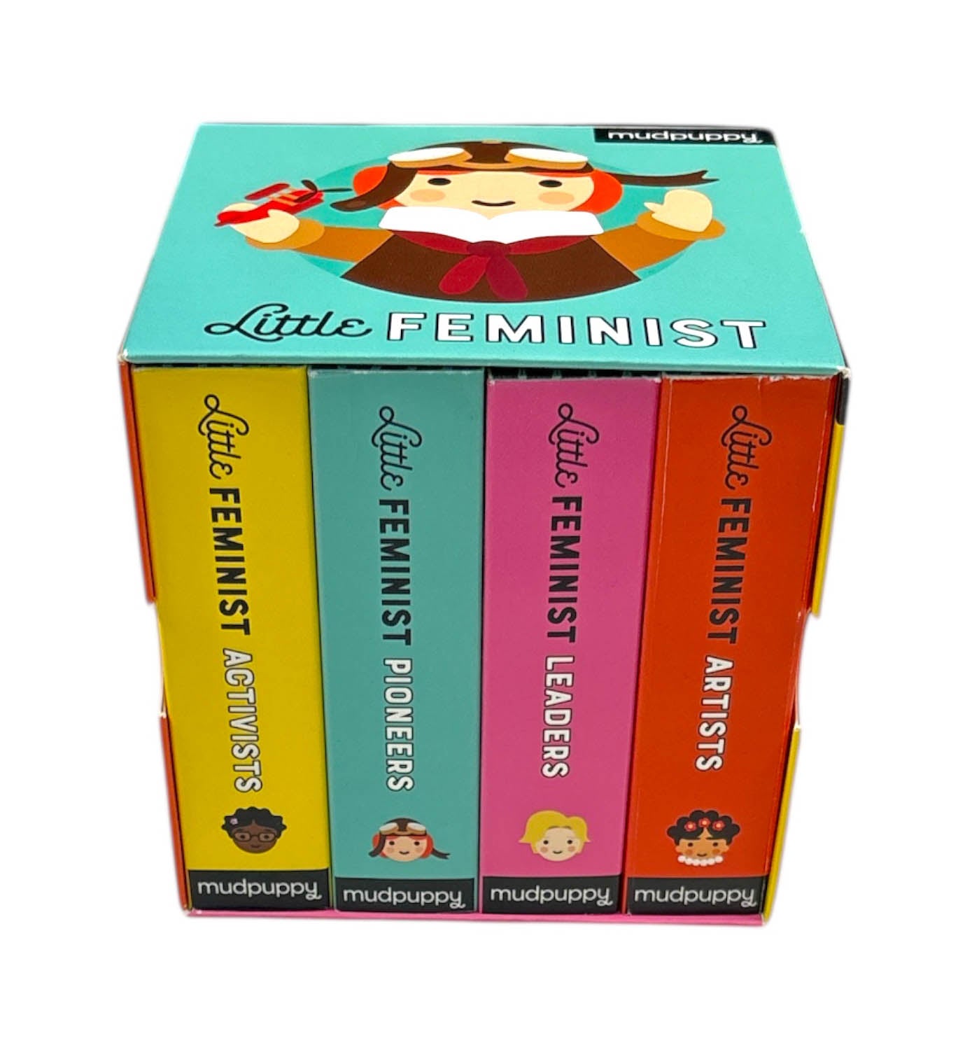 Mudpuppy's Little Feminist Board Book Set is comprised of colorful illustrated portraits of real women who have made historical impact on the world. Illustrations by Lydia Ortiz and words by Emily Kleinman introduce children to these important people in history with images that are fun for youngsters and also realistic. The Board Book Set includes 4 mini board books, 8 chunky pages per book (Pioneers, Artists, Leaders, and Activists), packaged in a slipcase box