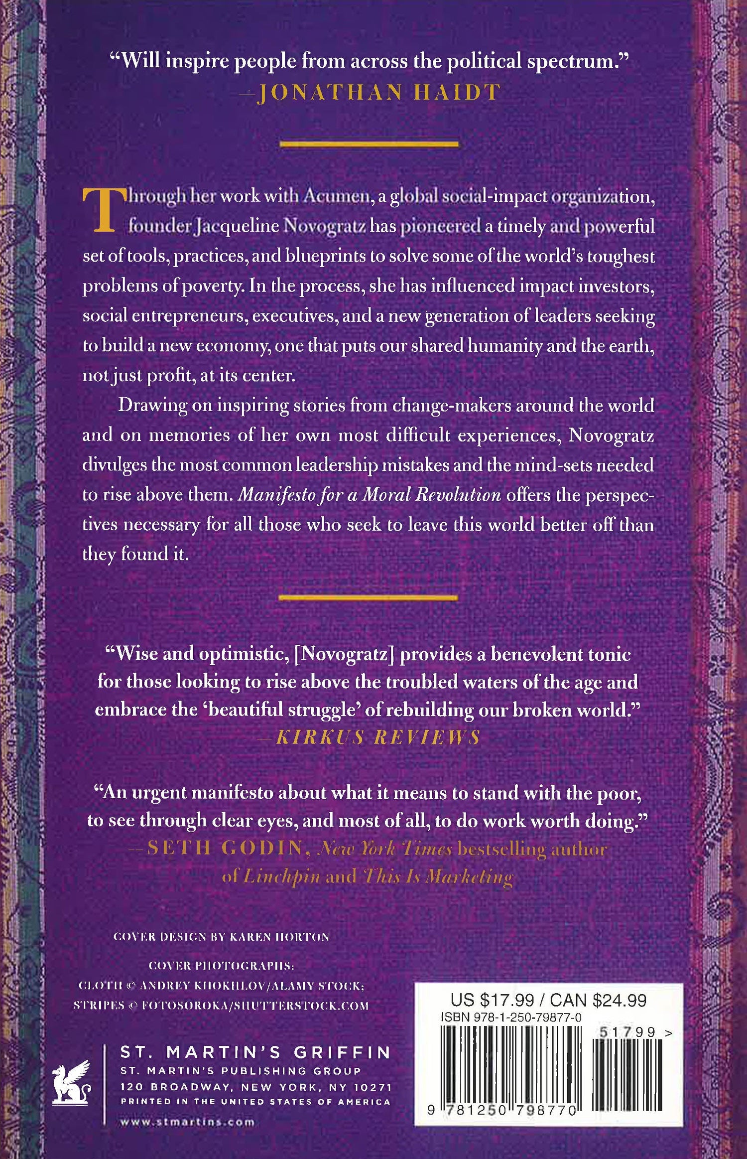 Drawing on inspiring stories from change-makers around the world and on memories of her own most difficult experiences, Jacqueline divulges the most common leadership mistakes and the mind-sets needed to rise above them. The culmination of thirty years of work developing sustainable solutions for the problems of the poor, Manifesto for a Moral Revolution offers the perspectives necessary for all those--whether ascending the corporate ladder or bringing solar light to rural villages--who seek to leave this world better off than they found it.