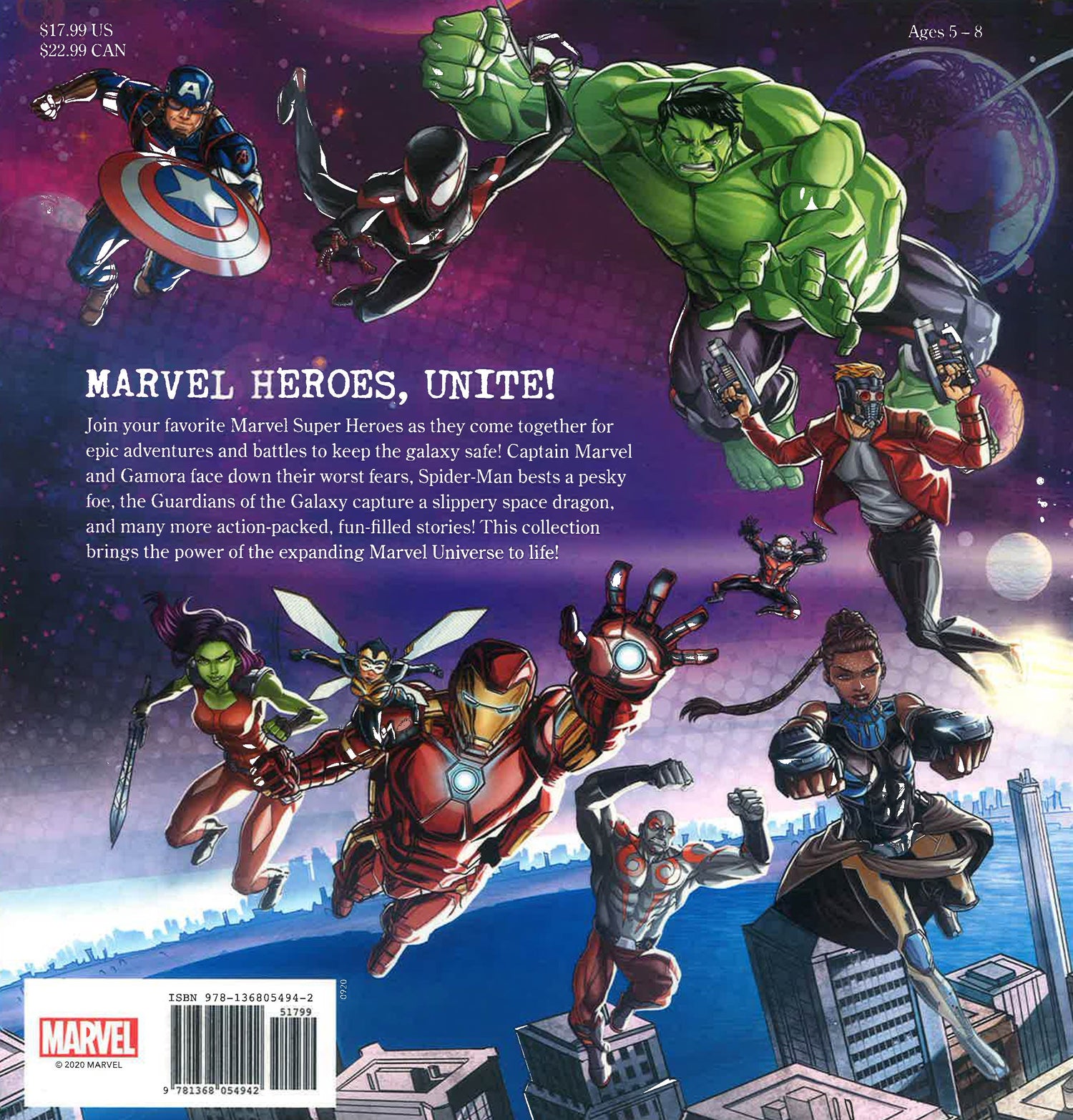 Join your favorite Marvel Super Heroes as they come together for epic adventures and battles to keep the galaxy safe! Captain Marvel and Gamora face down their worst fears, Spider-Man bests a pesky foe, the Guardians of the Galaxy capture a slippery space dragon, and many more action-packed, fun-filled stories!