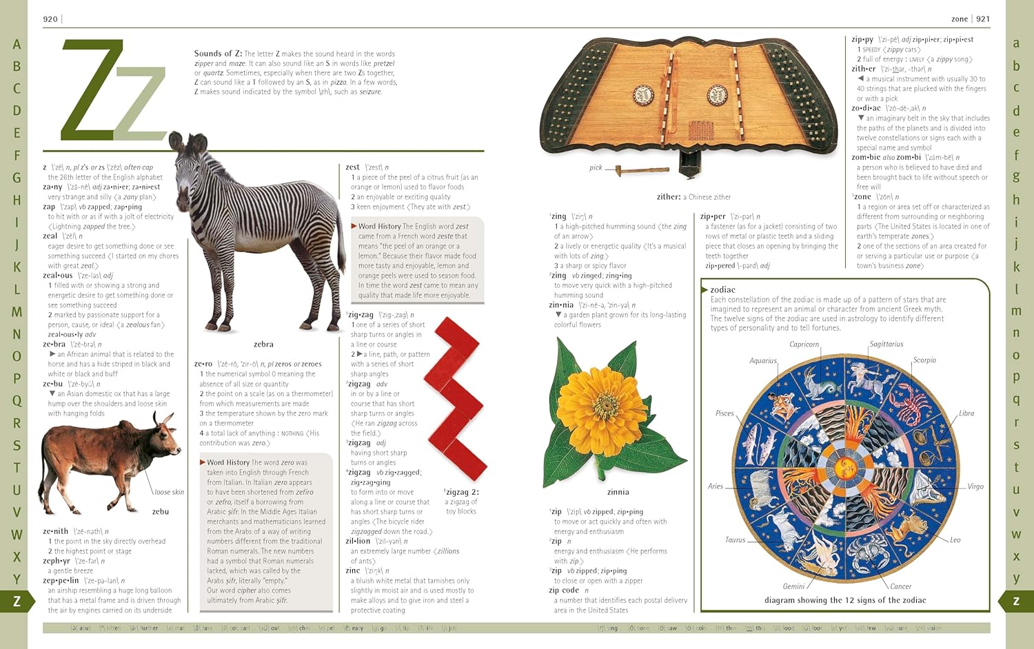 • Synonym and Word History boxes that highlight particular characteristics and meanings of words