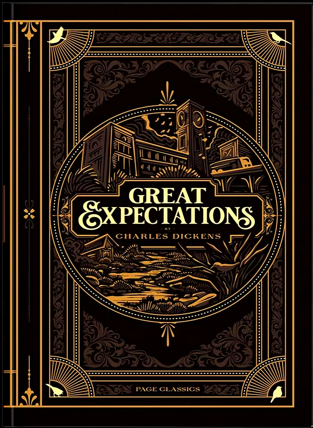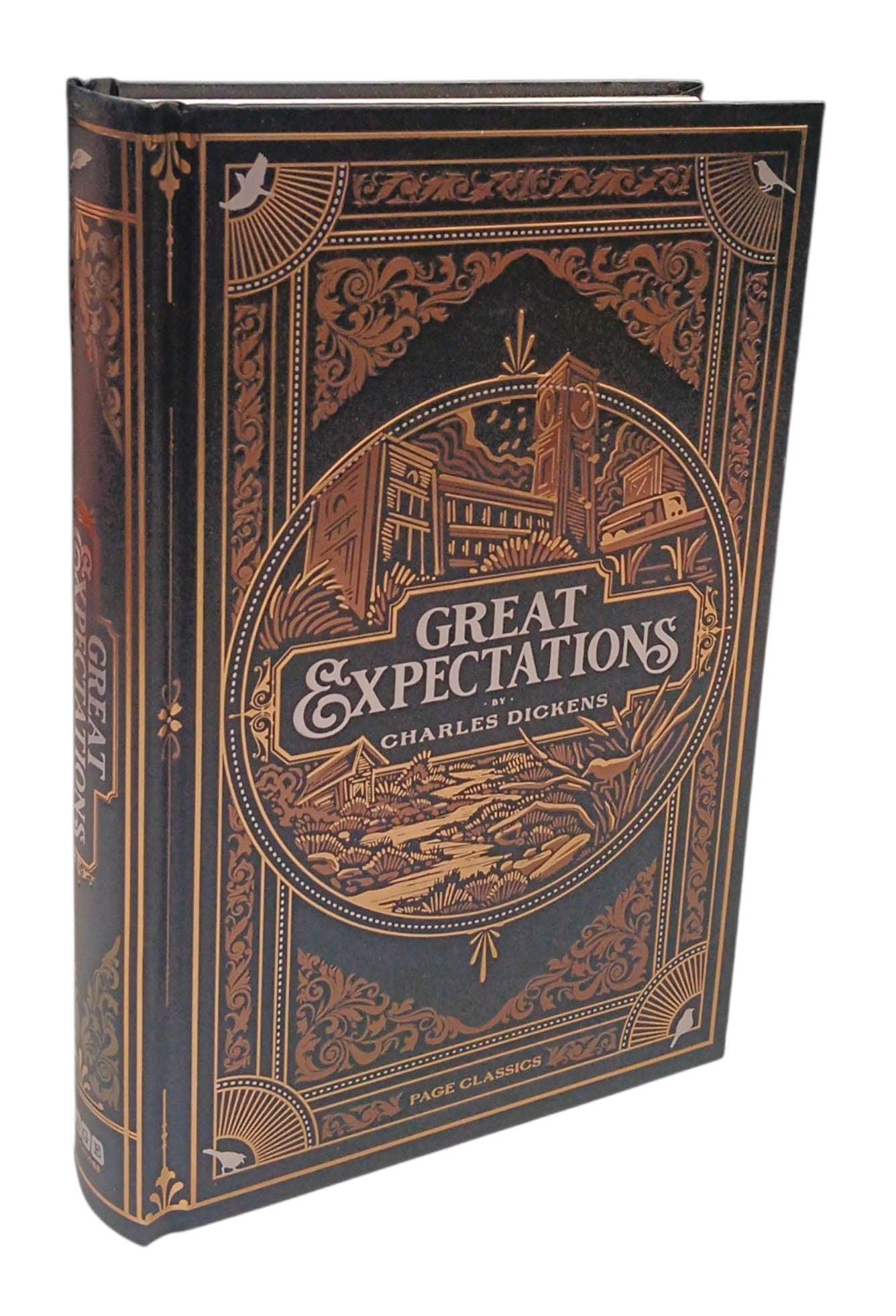 Deluxe Hardcover featuring a debossed cover with 3 color foil. Great Expectations, written by Charles Dickens, follows the life of an orphan named Pip, who grows up with dreams of rising above his humble beginnings to become a gentleman. Raised by his harsh sister and her kind-hearted husband, Joe Gargery, Pip's life changes forever when he assists an escaped convict named Magwitch, an act that will have lasting consequences. Later, he is invited to the home of the wealthy, eccentric Miss Havisham, where he meets the beautiful but cold Estella, with whom he falls in love. When Pip receives an unexpected fortune from an unknown benefactor, he believes it to be Miss Havisham's doing and assumes he is being groomed to marry Estella. Moving to London, Pip learns painful lessons about wealth, love, and social class, eventually realizing the true nature of his benefactor and reevaluating his values and ambitions. Great Expectations is a profound exploration of social mobility, integrity, and the transformative power of compassion, making it one of Dickens’ most cherished novels