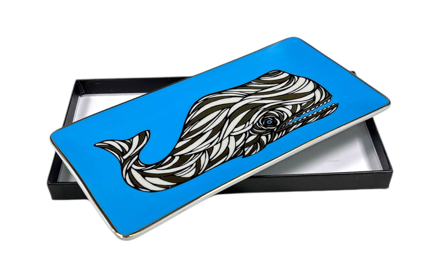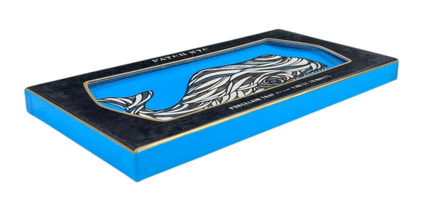 Patch NYC, designers Don Carney and John Ross, are known for their attention to intricate details inspired by flea market finds, combined with an unexpected color palette and gold foil accents. The Patch NYC Whale Tray from Galison is no exception, beautifully colored with blue background and whale illustration enhanced with gold foil. The tray is packaged in a sturdy die-cut window box so it makes a great gift and is sure to become the perfect destination for keys, jewelry, and other trinkets or desktop items.