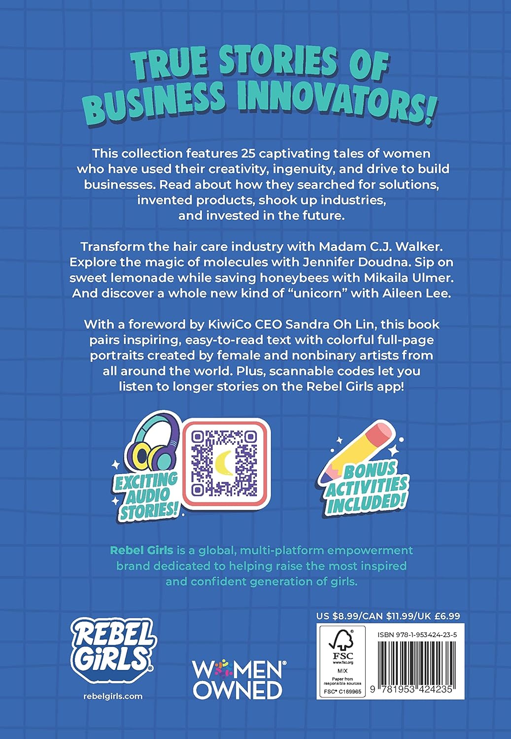 Rebel Girls Awesome Entrepreneurs: 25 Tales of Women Building Businesses showcases influential CEOs, entrepreneurs, founders, and investors who have used their creativity and ingenuity to develop clever ideas, launch new products, build businesses, disrupt industries, support others, and invest in the future. It is part of the award-winning Good Night Stories for Rebel Girls series.