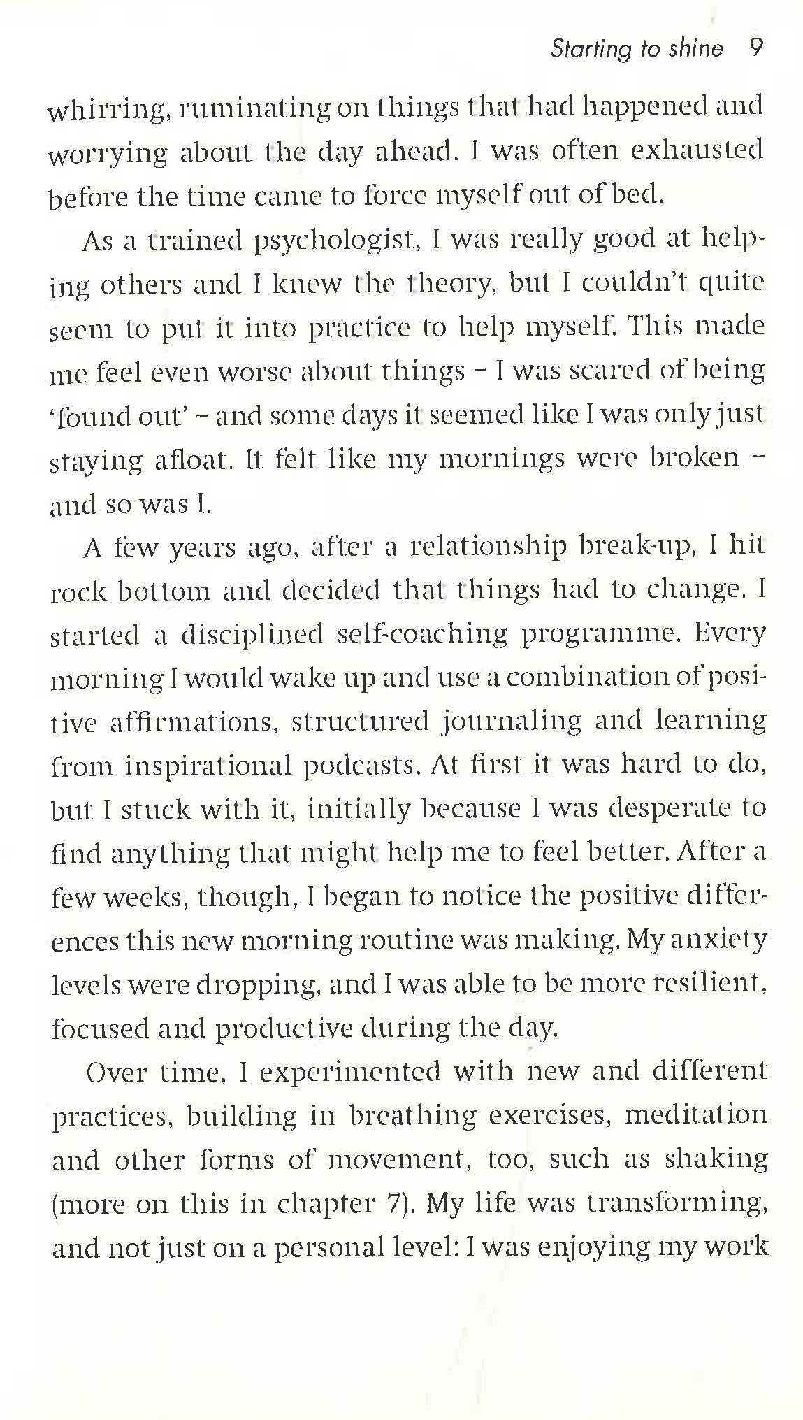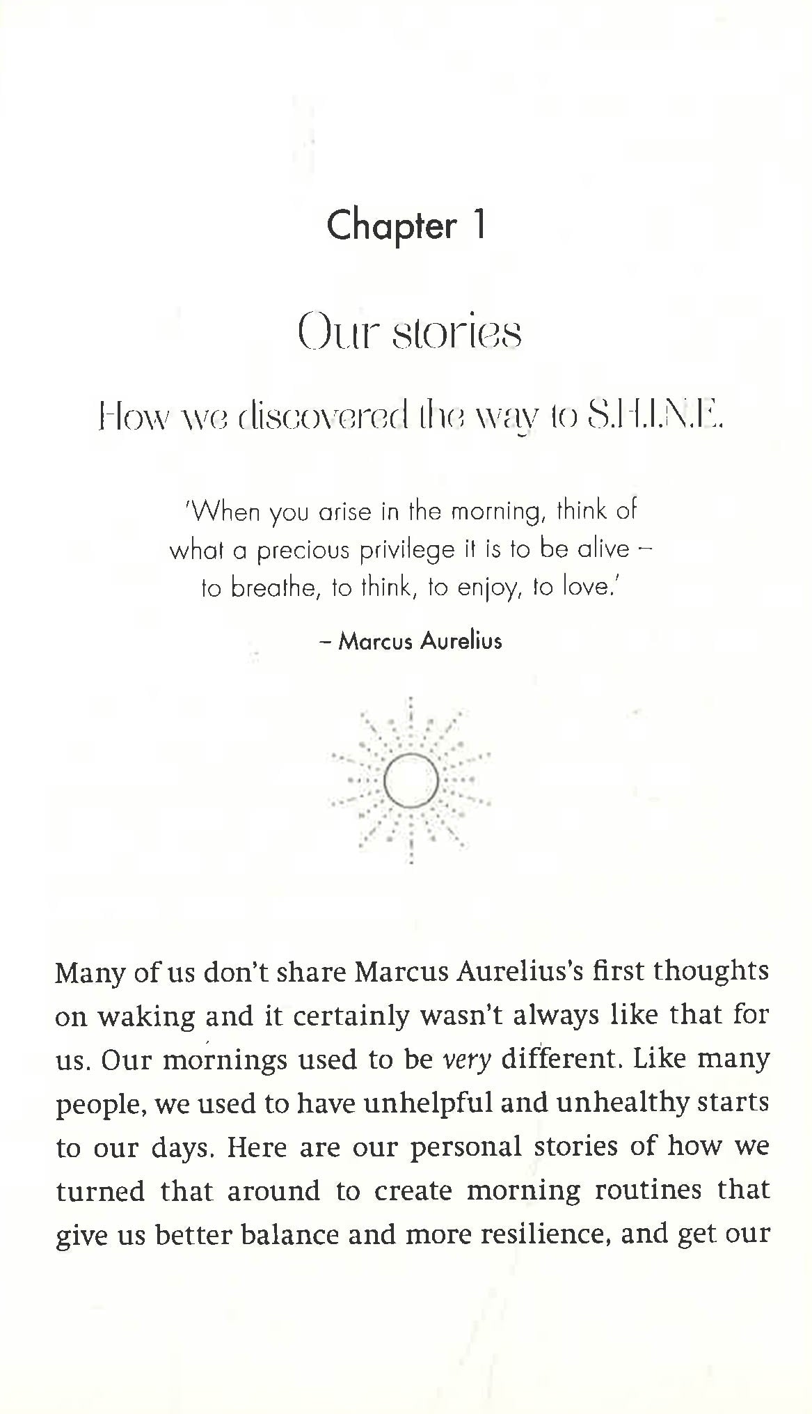 Based on the latest scientific research, ancient traditions and insights gathered from over five decades of personal and professional experience, Rise and Shine offers thirty different practices and supportively guides you through how to use each of these. So that you can learn to build a positive morning routine that really works for you. One that enables you to reclaim your mornings in a way that blends seamlessly with your lifestyle, starting from as little as 3 minutes per day.