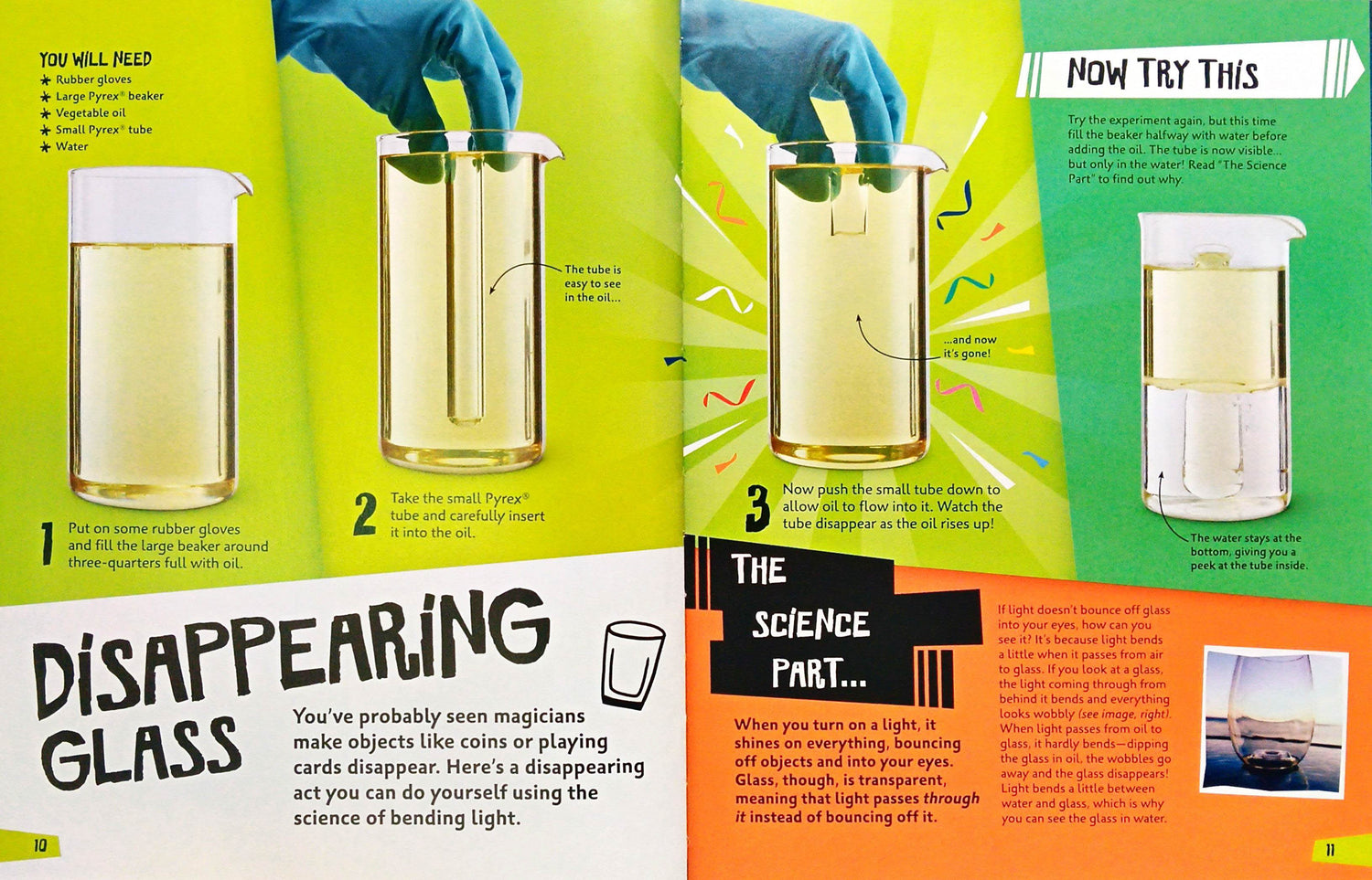Learn how to bend water with a balloon, turn water into juice, make a glass beaker disappear in oil, and wow your friends with levitating tinsel! Packed with optical illusions, pranks, and fun facts, this book is a must-have for any aspiring scientist or magician (the two aren't as different as you might think)!
