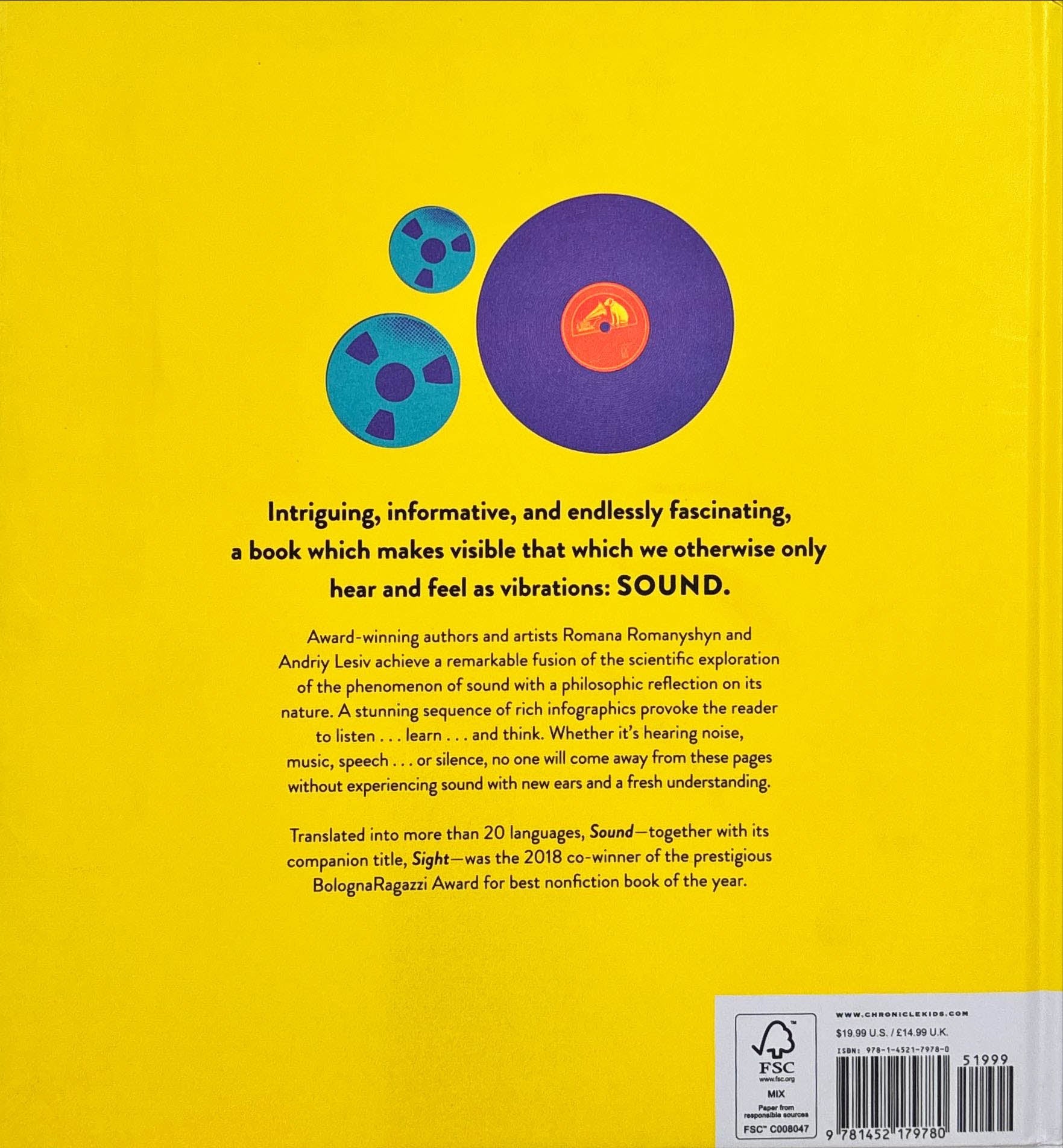 Award-winning authors and artists Romana Romanyshyn and Andriy Lesiv achieve a remarkable fusion of the scientific exploration of the phenomenon of sound with a philosophic reflection on its nature that will appeal to inquisitive children looking to learn more about science and nature. A stunning sequence of rich infographics provoke the reader to listen . . . learn . . . and think. Whether it's hearing noise, music, speech . . . or silence, no one will come away from these pages without experiencing sound with new ears and a fresh understanding.