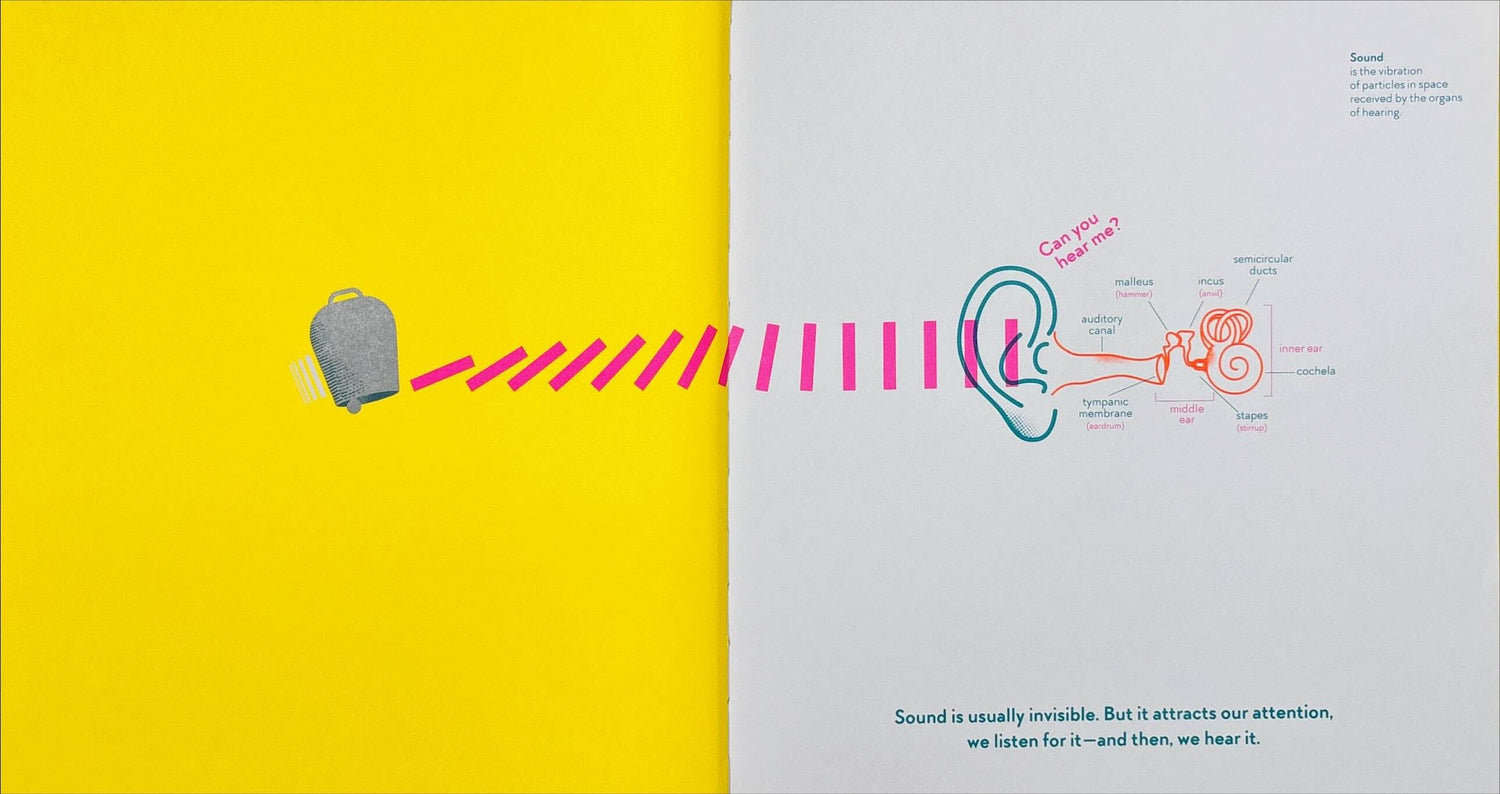 The accessible, kid-friendly visuals throughout Sound help children to connect with STEM topics and learn surprising and interesting facts about one of our most important senses.