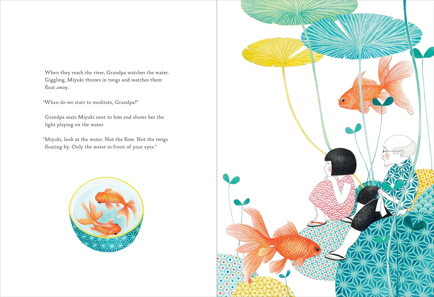 Together they admire the garden, observe the river, and gaze at the clouds. An afternoon spent in contemplation of nature deepens their gratitude for each other and the world around them, and Miyuki comes to understand that meditation takes the form of small acts of mindfulness throughout her day.