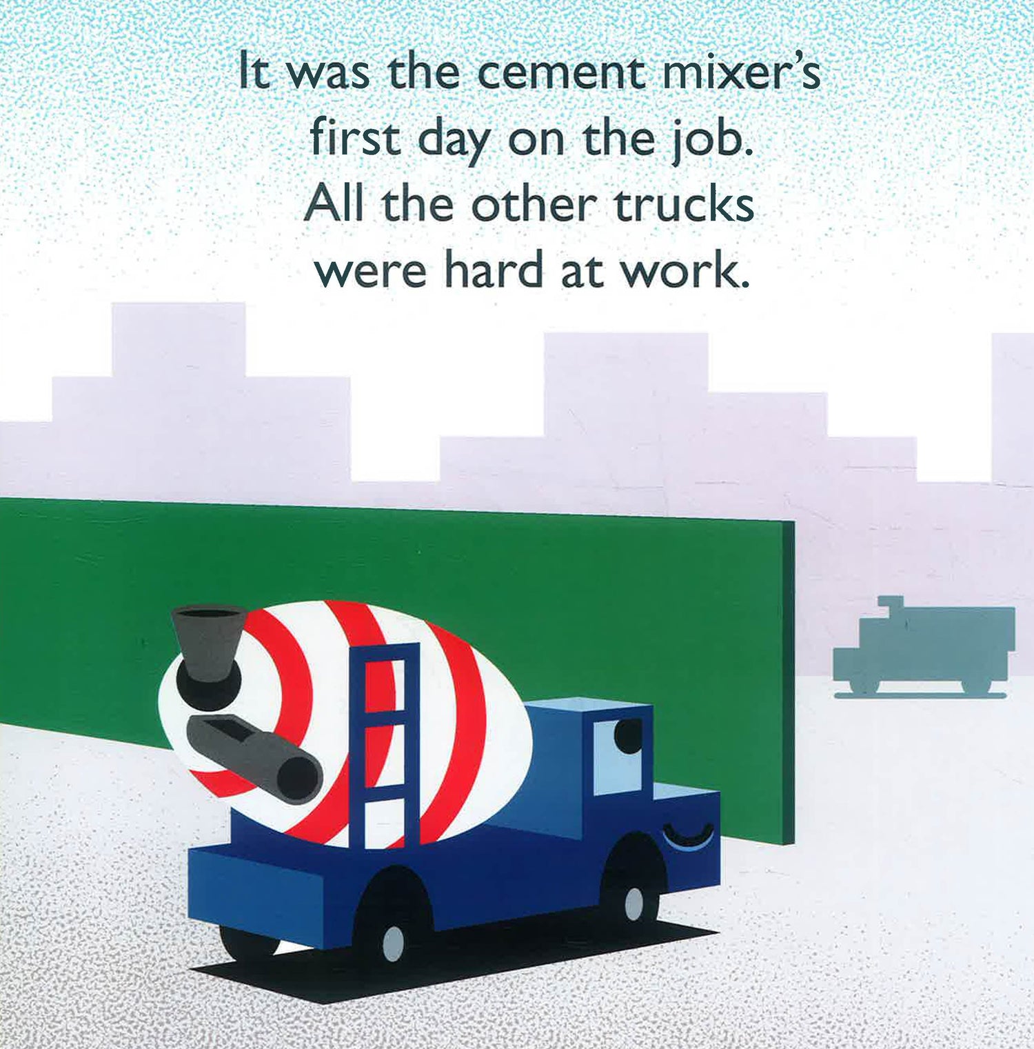 It's Cement Mixer's first day on the job and he doesn't want to make any mistakes. How can he help the other trucks on the construction site? By mixing some powdery white cement, of course!