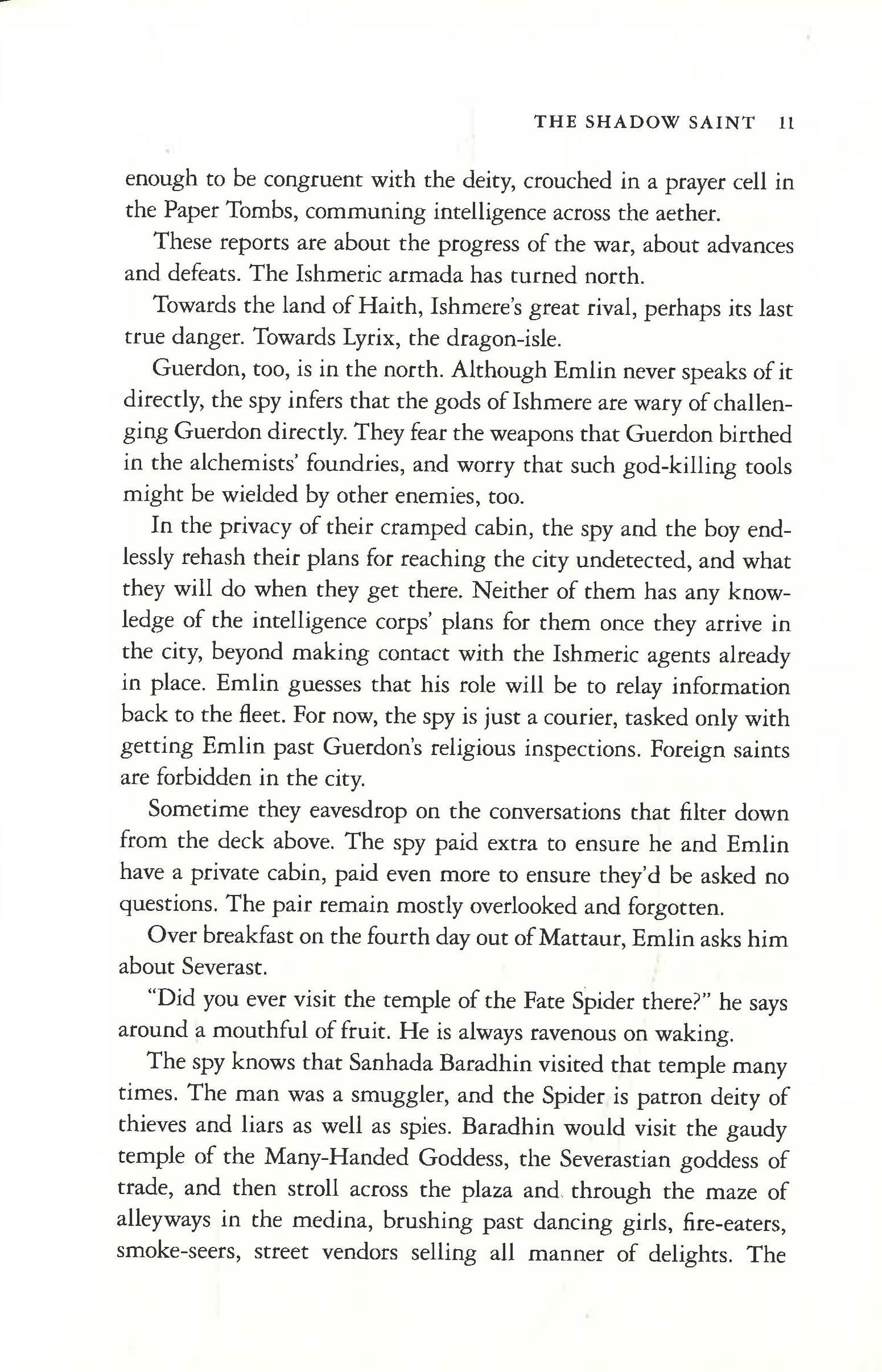 The Shadow Saint continues the gripping tale of dark gods and dangerous magic that began with Hanrahan's acclaimed debut The Gutter Prayer.
