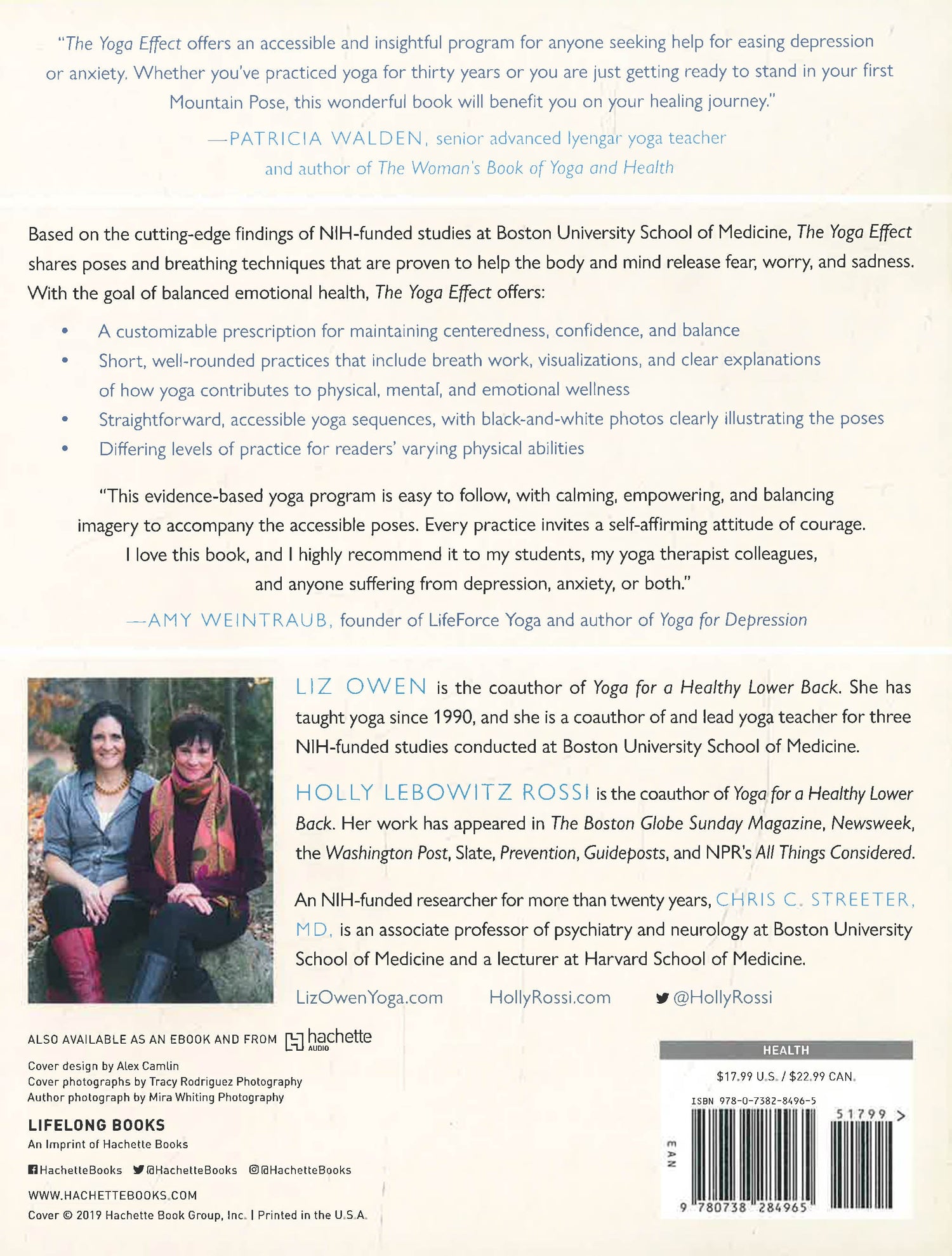 The Yoga Effect helps readers overcome the de-energizing effects of depression and move into a state of calm and focus. Based on the program developed through three NIH-funded studies at Boston University School of Medicine, these sequences are medically proven to trigger a physical and mental release of fear and worry. The book offers: