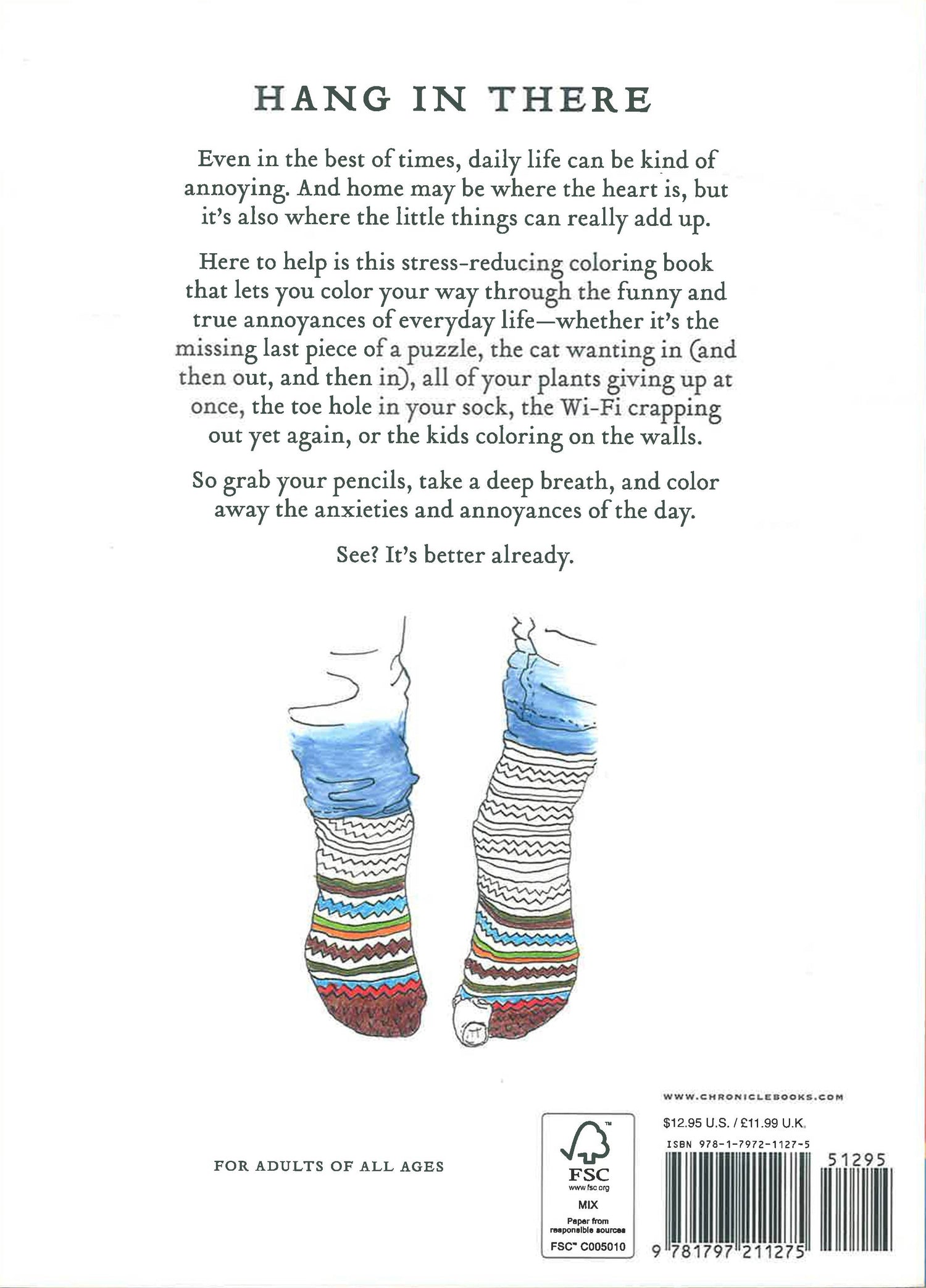 • TOTALLY RELATABLE MATERIAL: Whether it's the missing last piece of a puzzle, the cat wanting in (and then out, and then in), all of your plants giving up at once, a toe hole in your sock, the wifi crapping out yet again, or the kids coloring on the walls (give them this book!) each scene is funny, relatable, and all-too-true.