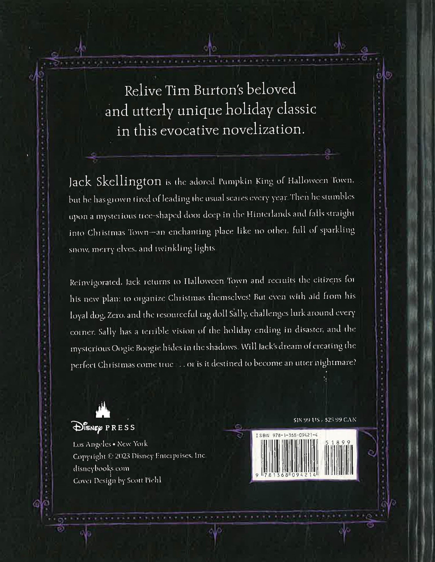 Jack Skellington is the beloved Pumpkin King of Halloween Town, but he has grown tired of leading the usual scares every year. Then he stumbles upon a mysterious tree-shaped door deep in the Hinterlands and falls straight into Christmas Town--an enchanting place like no other, full of sparkling snow, merry elves, and twinkling lights.