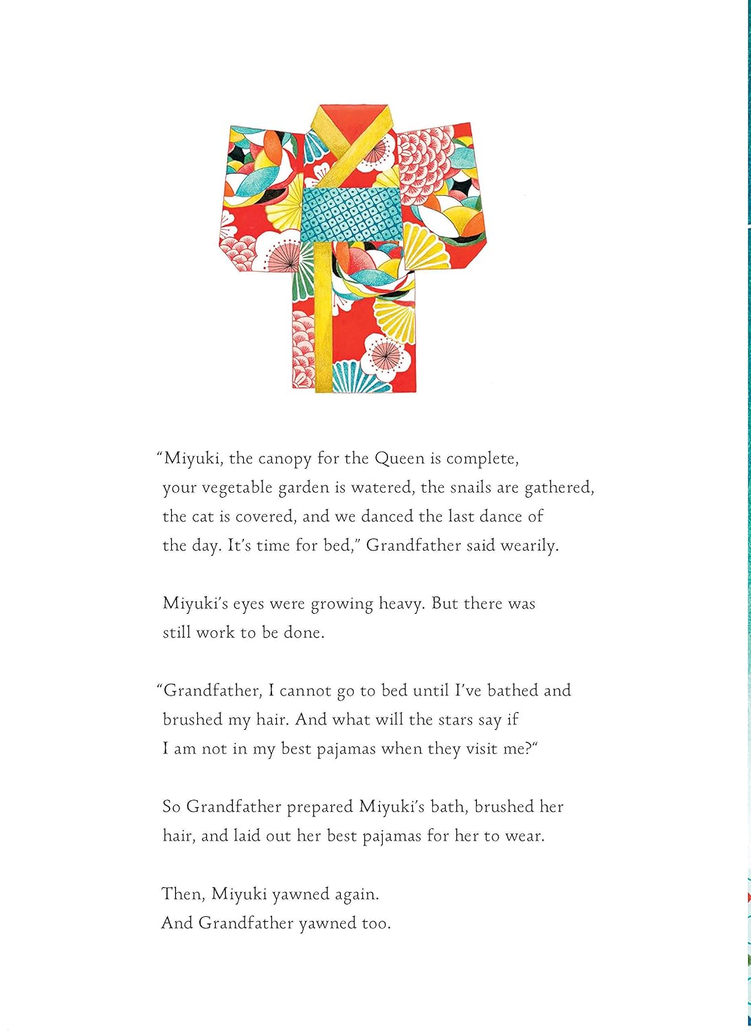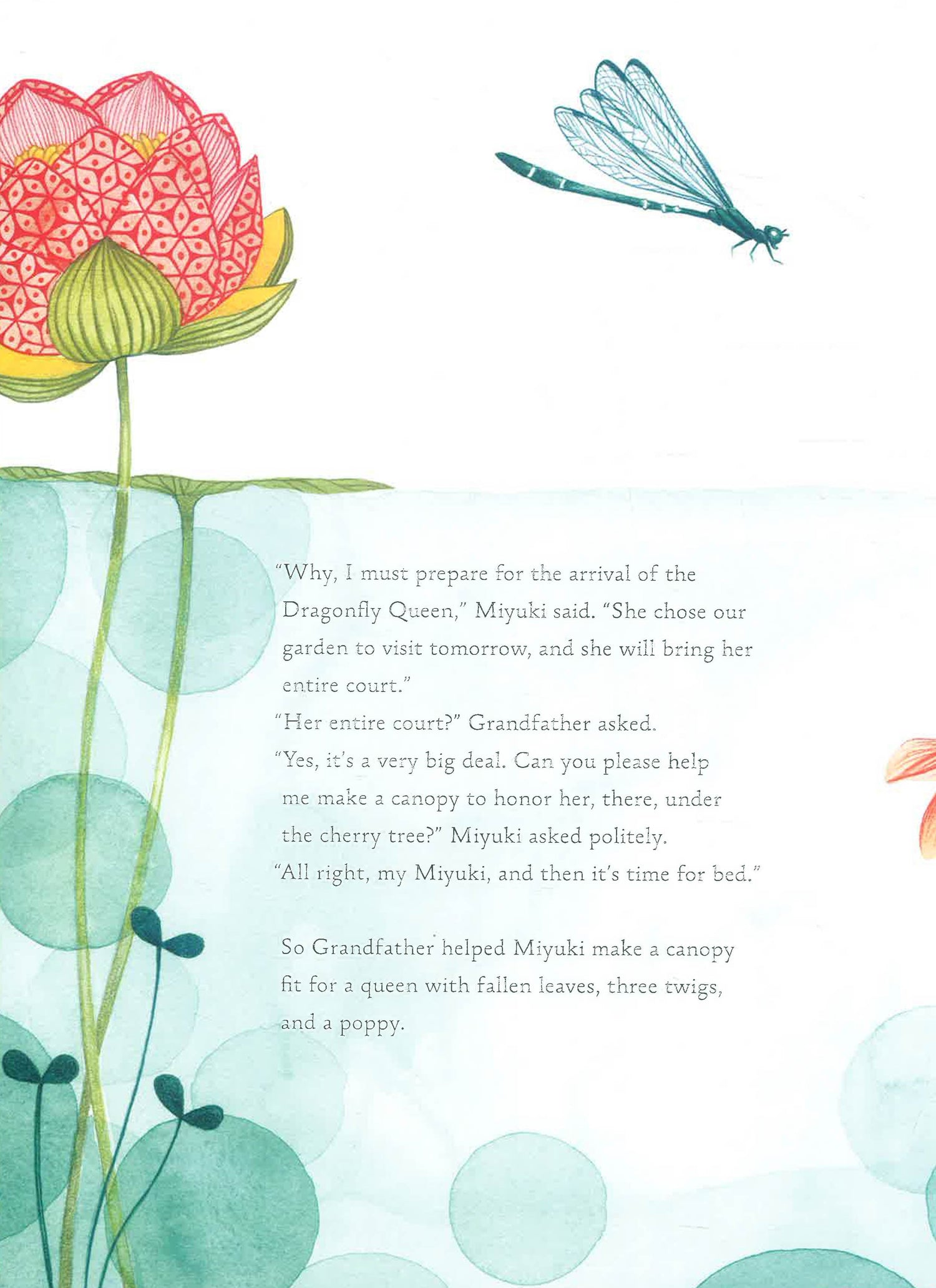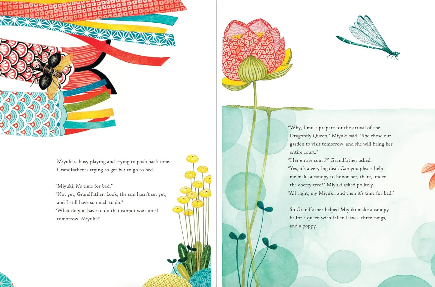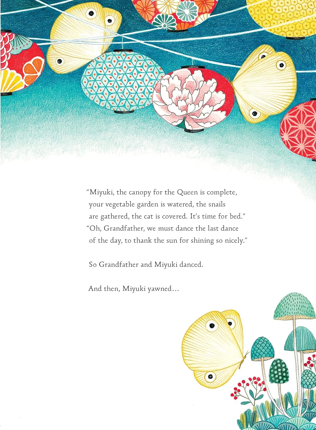 Like children everywhere, Miyuki's imagination peaks at bedtime, when she remembers all the things she has to do before she can possibly go to bed: she needs to water the vegetables, gather snails, and prepare for the arrival of the Dragonfly Queen. Her patient grandfather follows along on her adventures, gently encouraging her to go to sleep. In this beautiful story about family, nature, and love, young children and their parents find a welcome companion for their own bedtime journey.