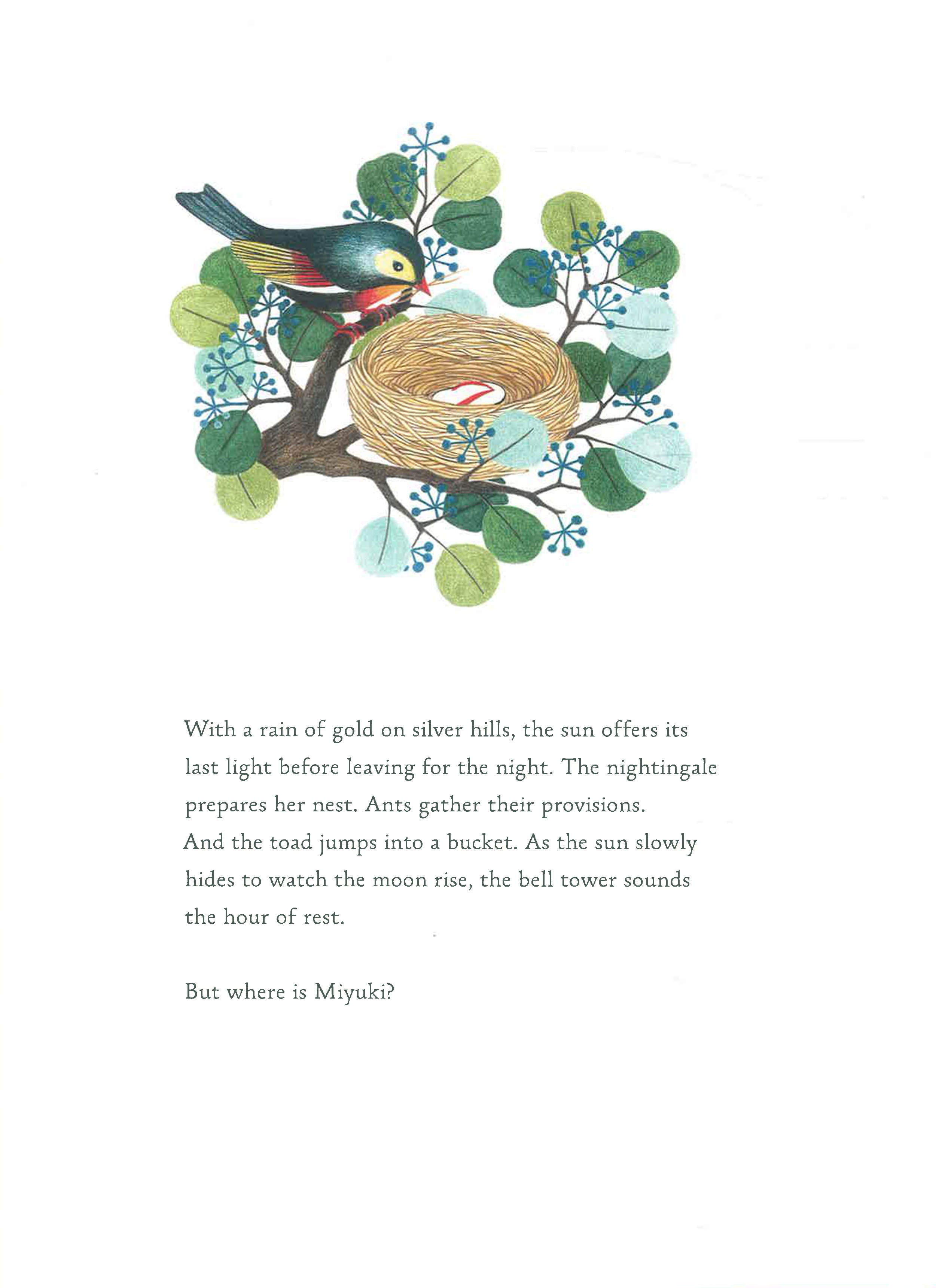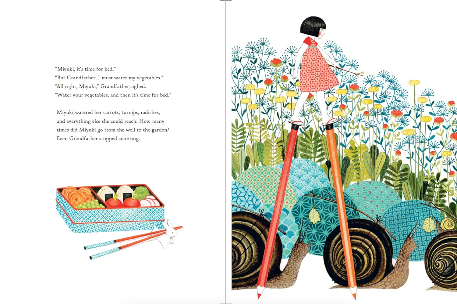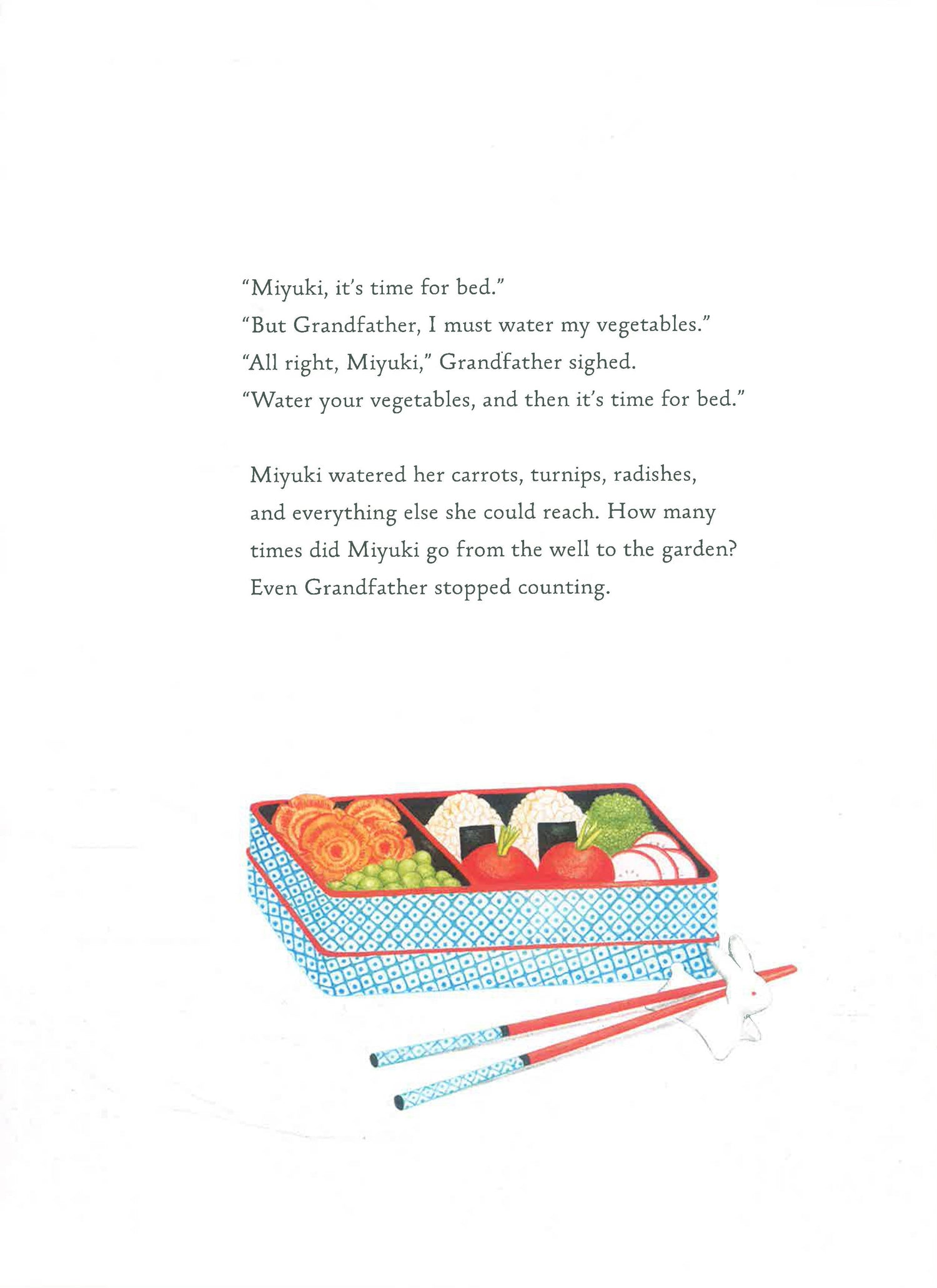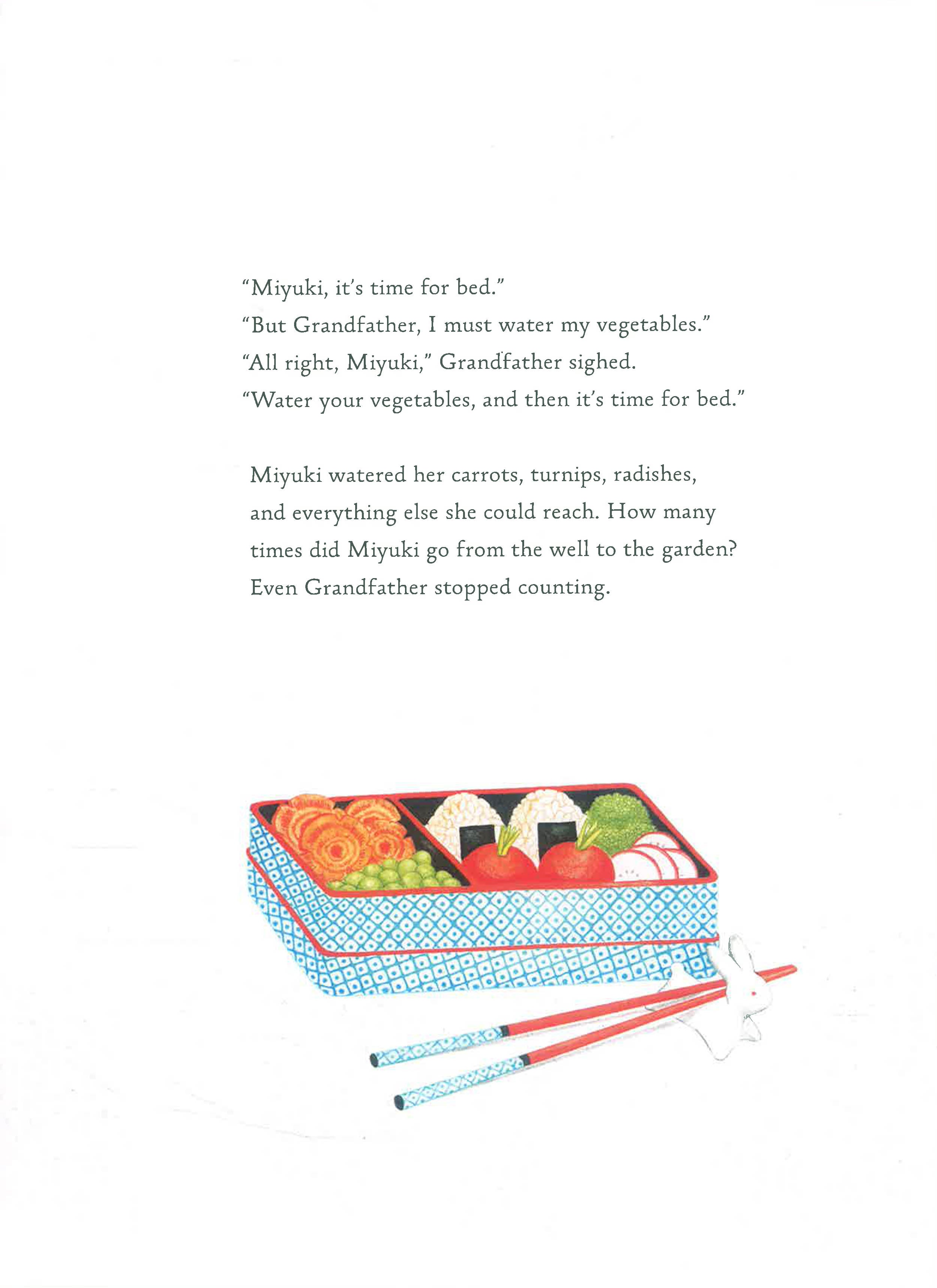 Like children everywhere, Miyuki's imagination peaks at bedtime, when she remembers all the things she has to do before she can possibly go to bed: she needs to water the vegetables, gather snails, and prepare for the arrival of the Dragonfly Queen. Her patient grandfather follows along on her adventures, gently encouraging her to go to sleep. In this beautiful story about family, nature, and love, young children and their parents find a welcome companion for their own bedtime journey.