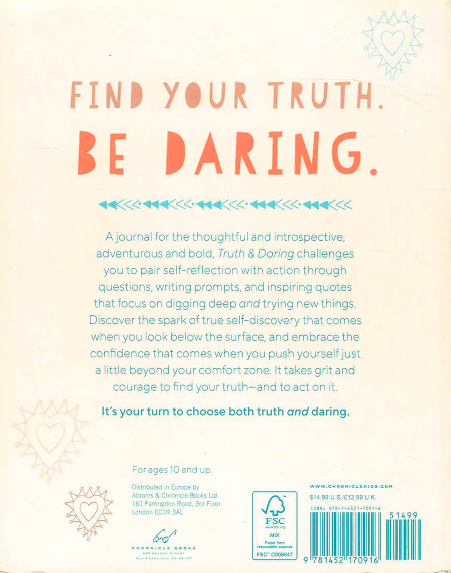 This guided journal takes the cultural titan Truth or Dare and turns it on its head by pairing self-reflection prompts with action to challenge readers of all ages to dig deep and try new things, while quotes throughout empower and inspire. Every left-hand page features a Truth prompt, inviting readers to reflect on their life; and every right-hand page features a Dare prompt, inviting readers to take action in their lives. Includes 8 tear-out mantra pages, featuring beautifully illustrated and hand-lettered quotes from inspiring feminist icons that users can hang on their wall.
