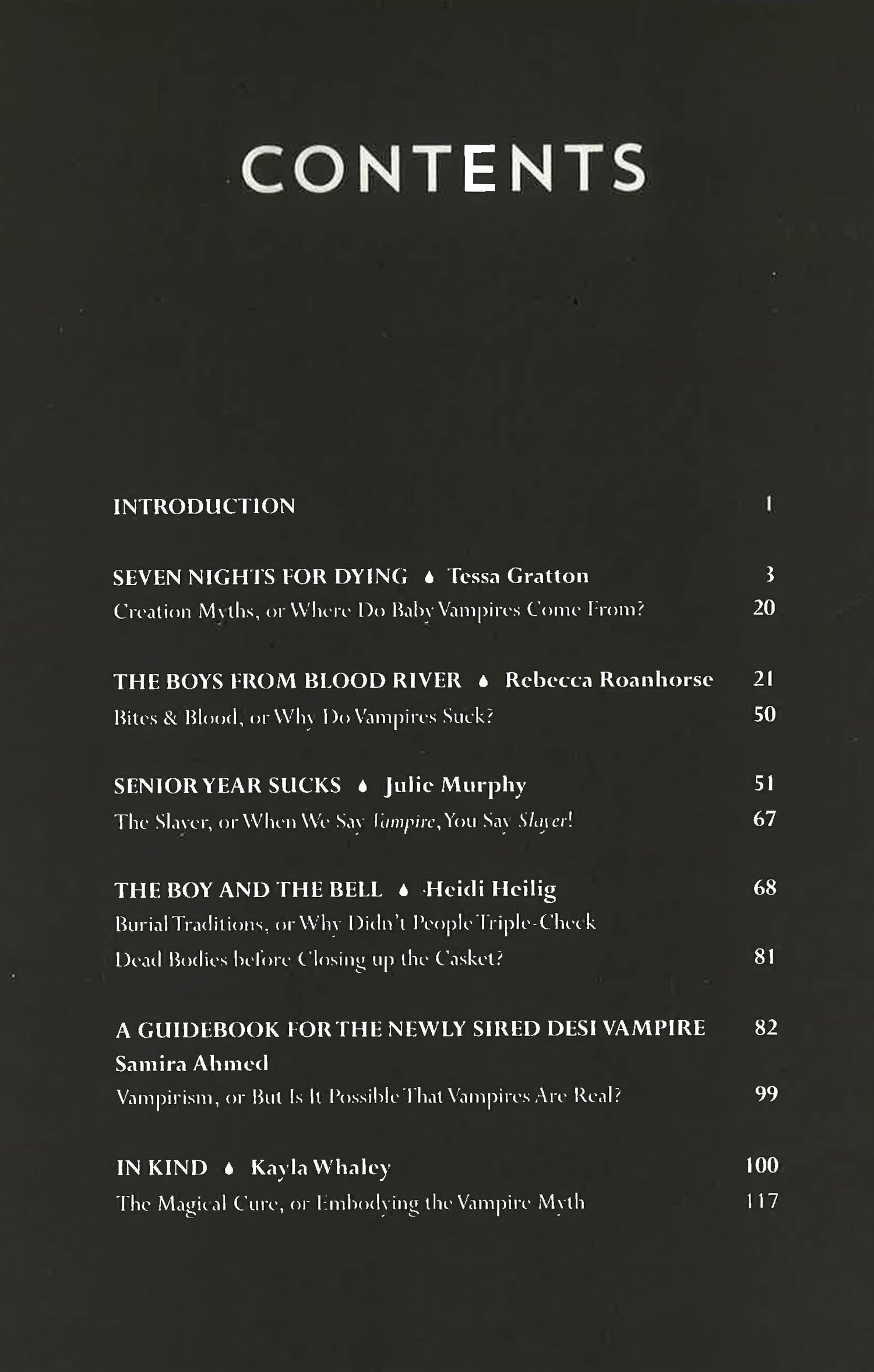 Vampires Never Get Old includes stories by authors both bestselling and acclaimed, including Samira Ahmed, Dhonielle Clayton, Zoraida Córdova and Natalie C. Parker, Tessa Gratton, Heidi Heilig, Julie Murphy, Mark Oshiro, Rebecca Roanhorse, Laura Ruby, Victoria “V. E.” Schwab, and Kayla Whaley.