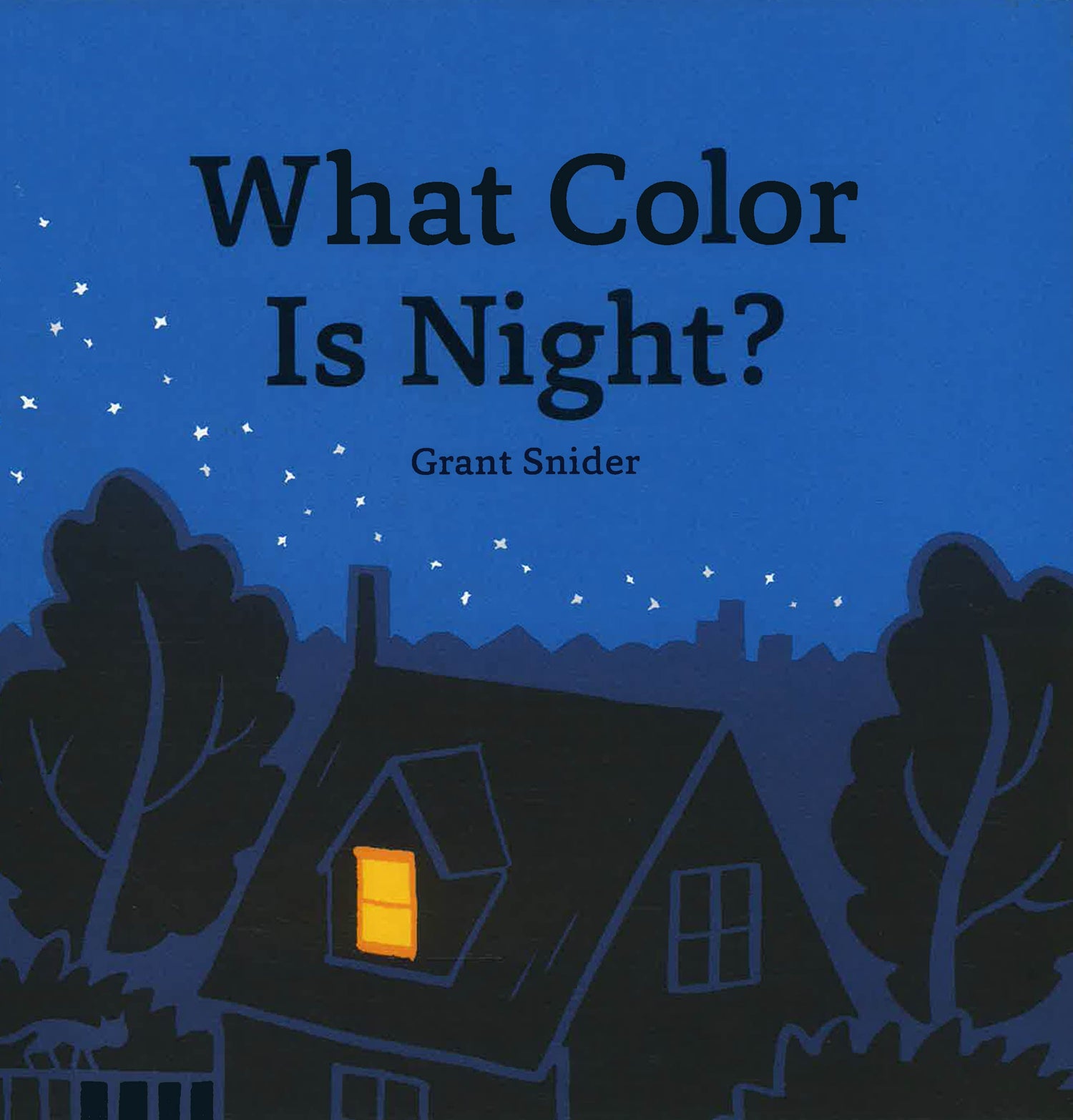 Look closer. Grant Snider's beautiful debut picture book explores the wonders—and colors—of nighttime. For night is not just black and white. Ending in colors yet unseen, and a night of sweet dreams, this lilting lullaby is sure to comfort those drifting off to sleep. With luminous art as spare and glowing as the moon, and lyrical text that reads like a friend leading the way through the wilderness, What Color Is Night? is a rich and timeless look at a topic of endless fascination, and a perfect bedtime read-aloud.