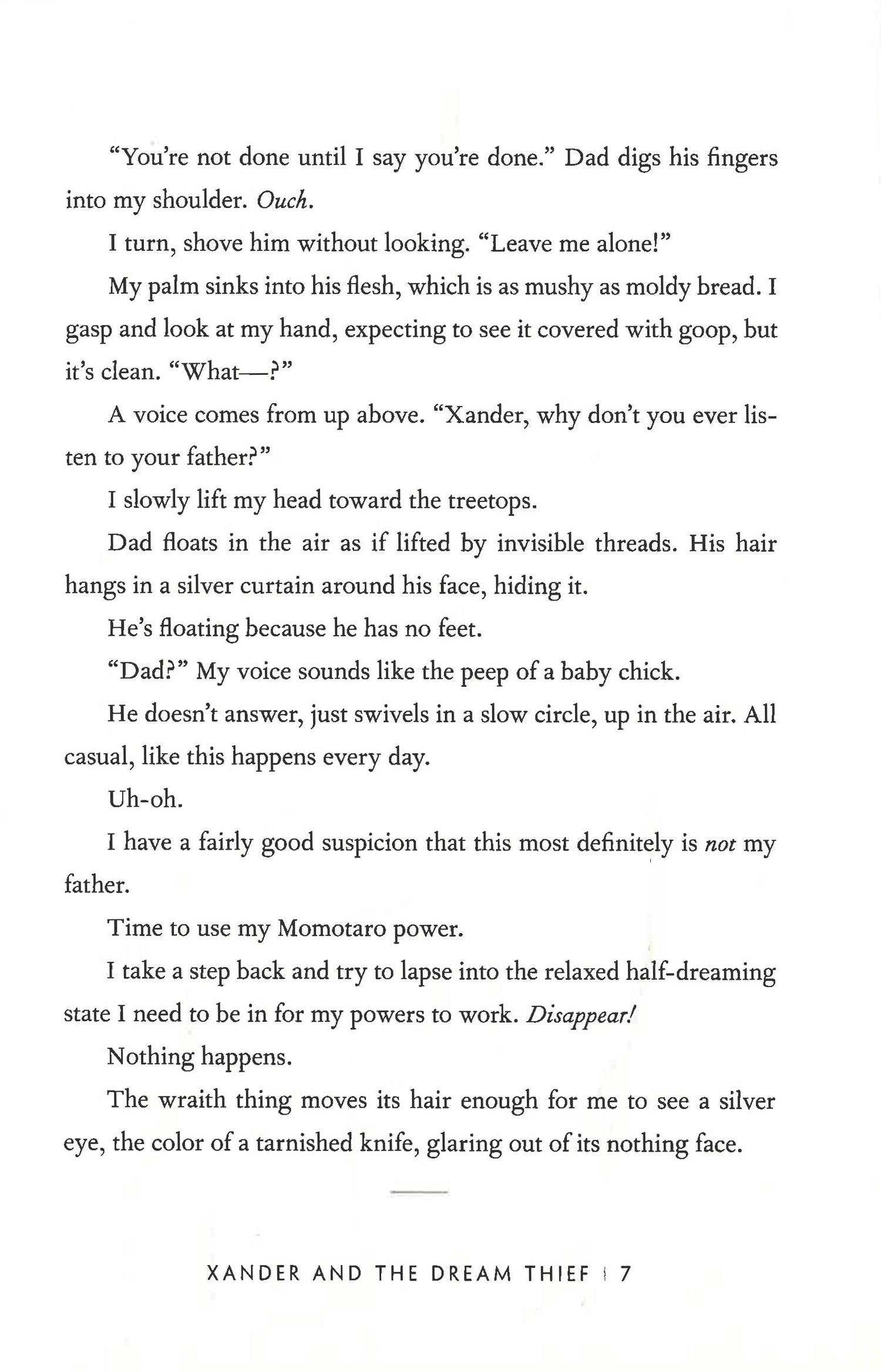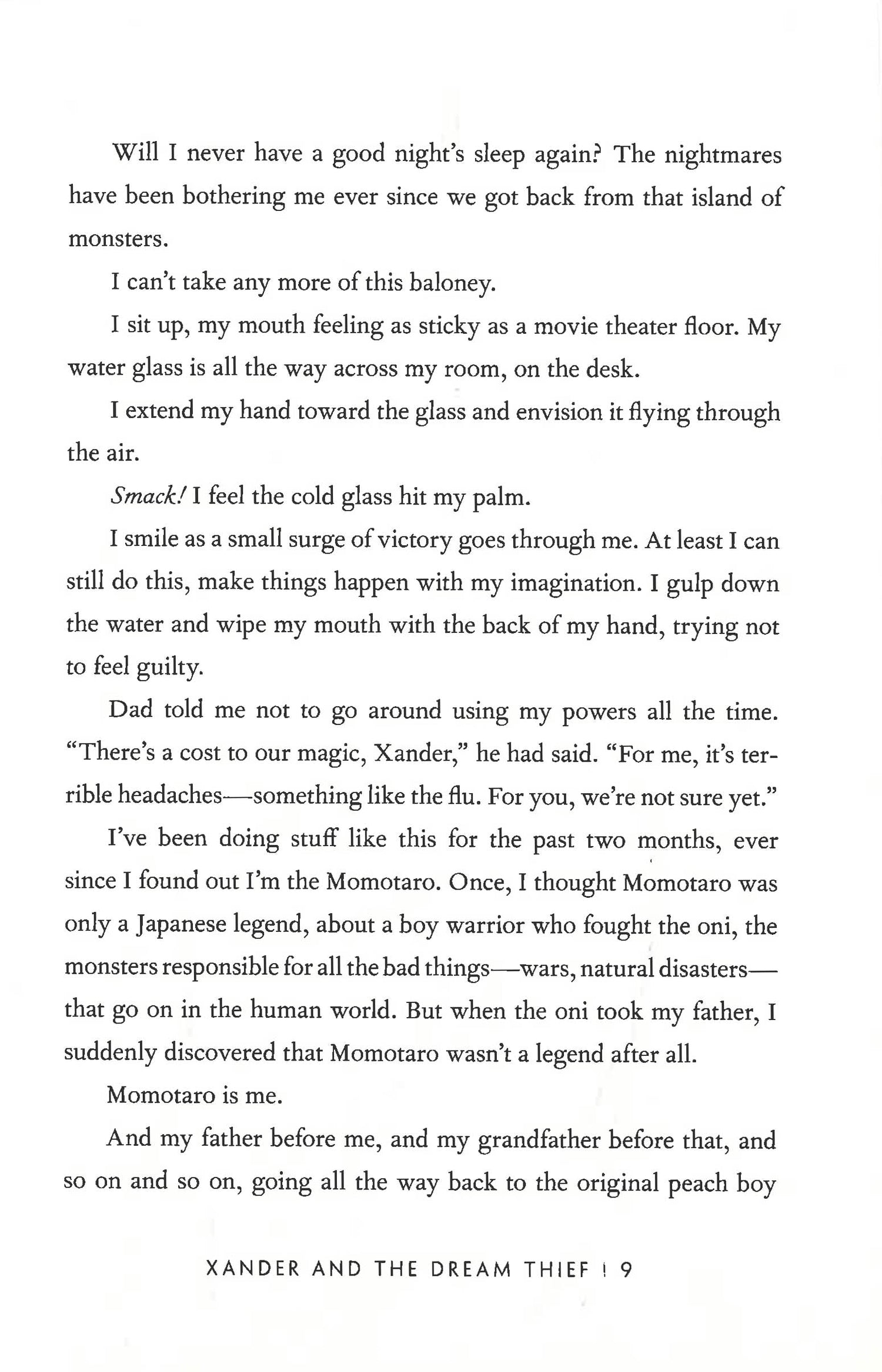 Xander's grandmother gives him a special baku charm to use to chase his nightmares away. He just has to be careful not to rely on it too much. If he does, the baku will not only take his dreams, but those of everyone in the house, forever. Without dreams, there is no hope, no motivation, no imagination, no Momotaro. And then it would be far too easy for Ozuno, king of the oni, to wreak havoc. . . .