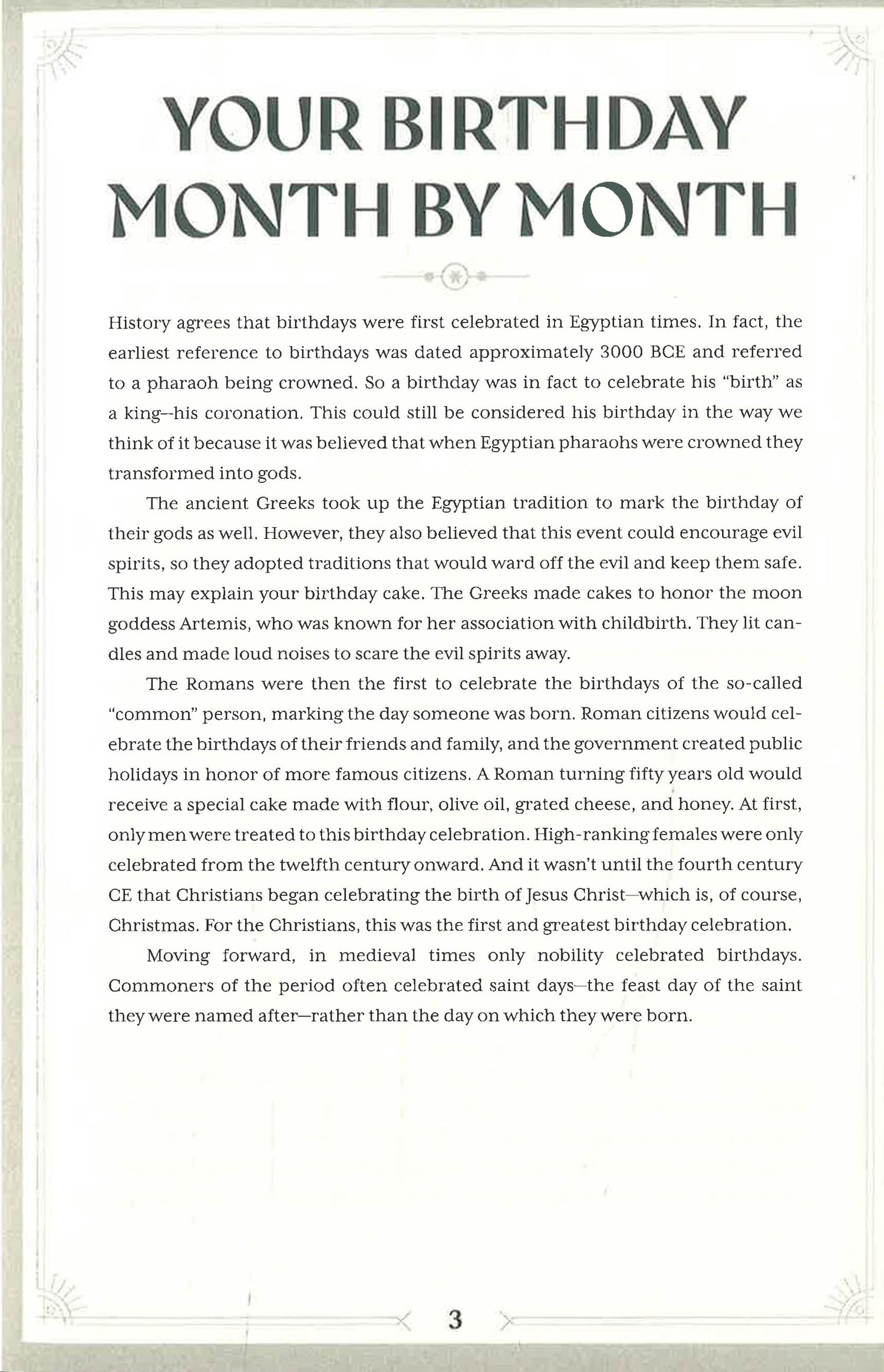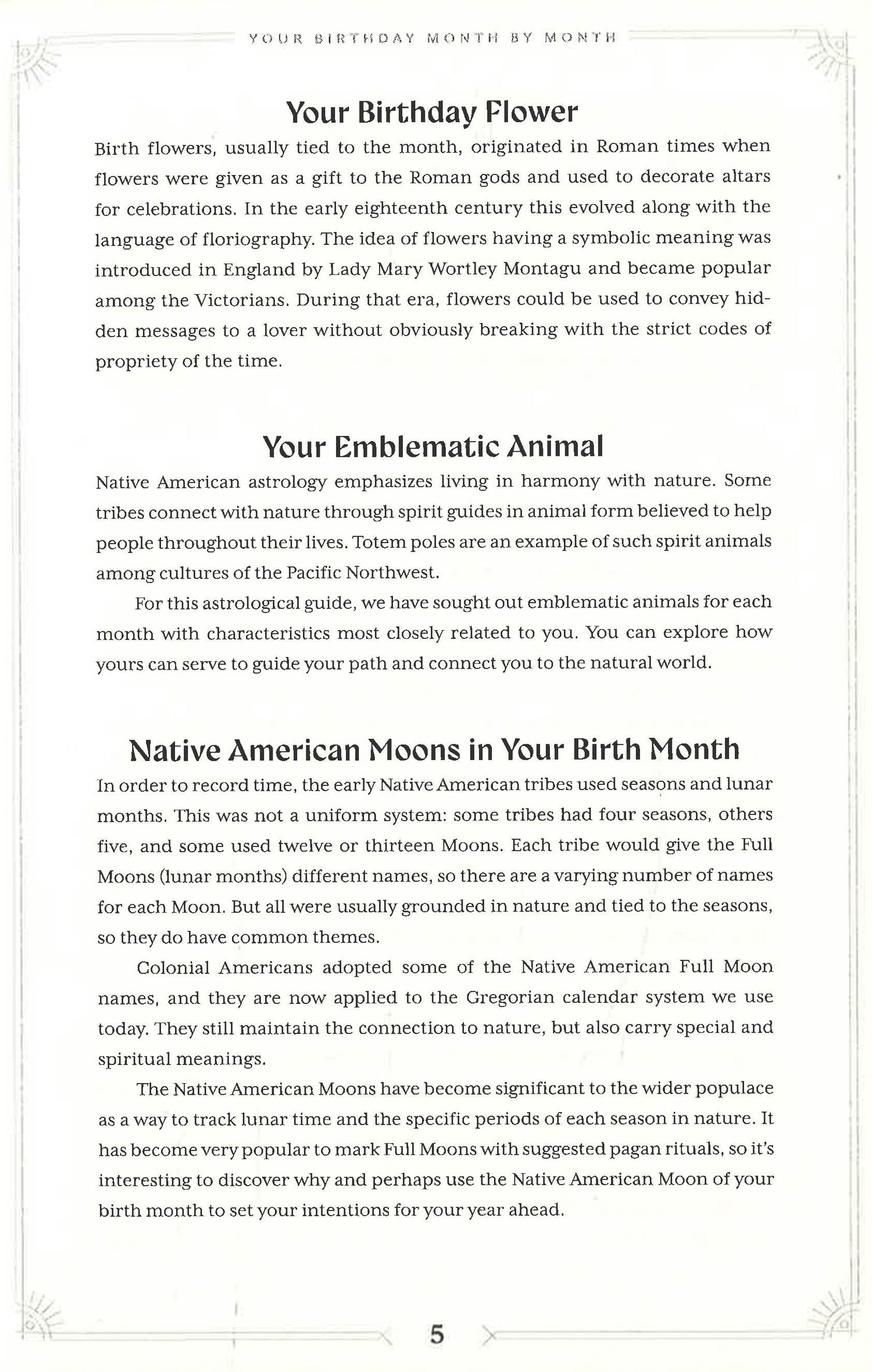 The book's first half incorporates monthly and day-by-day chapters, allowing for the study of birthdays from all angles. Each date-based entry also touches on the significance of the day in popular culture, showing not just the mystical but the social resonances of birthdays. Readers will discover celebrities who share their birthday month, day, and sign, as well as in-depth discussions of birthstones, birth flowers, emblematic animals, and Native American Moon correspondences for each month.