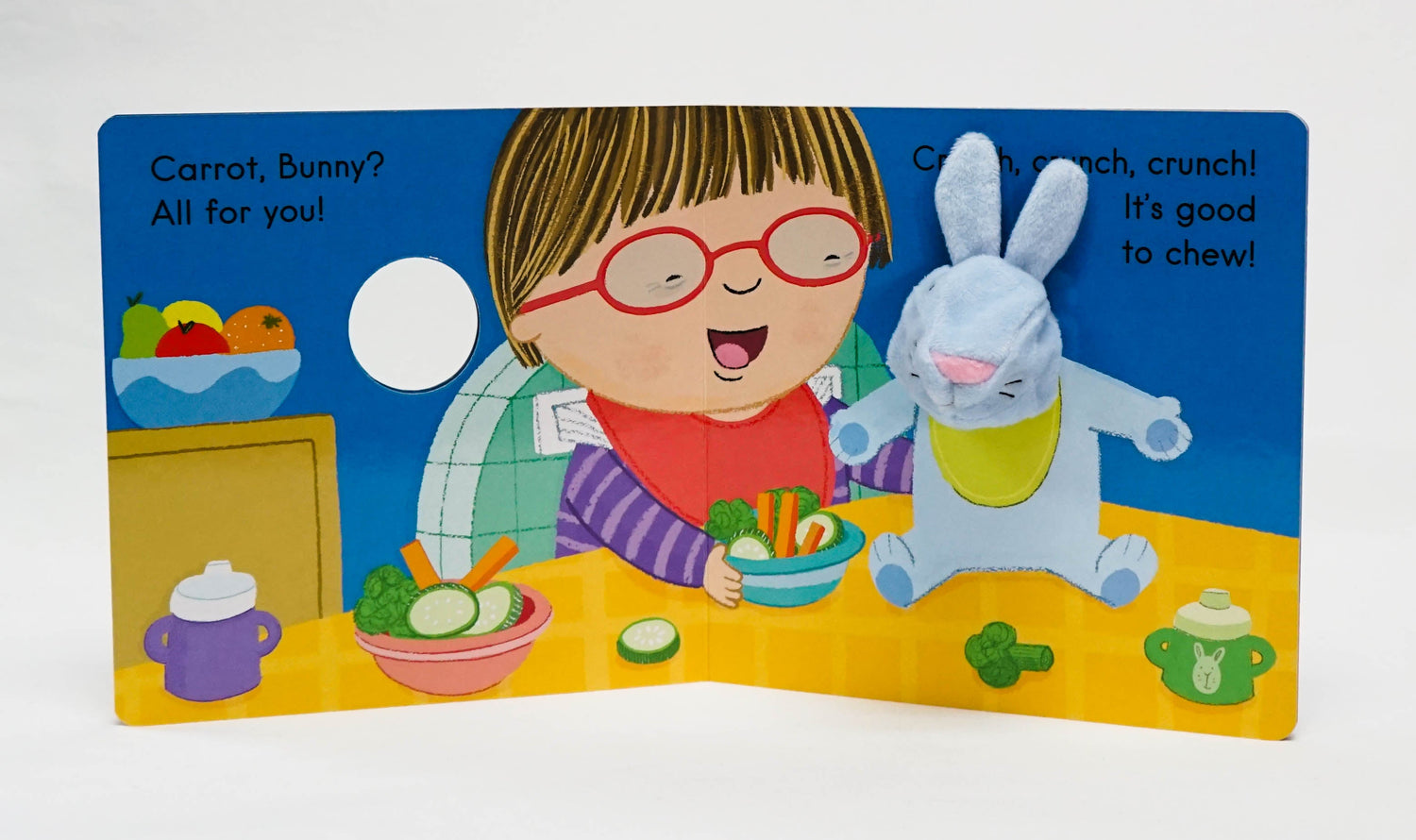 It's Bunny's meal time, and he's ready for a chat! There's a ready-made rhyming conversation in this finger puppet book, and you can make up your own as well! Talking with your baby fosters the early development of basic language and communication skills, and promotes emotional closeness and wellbeing.
