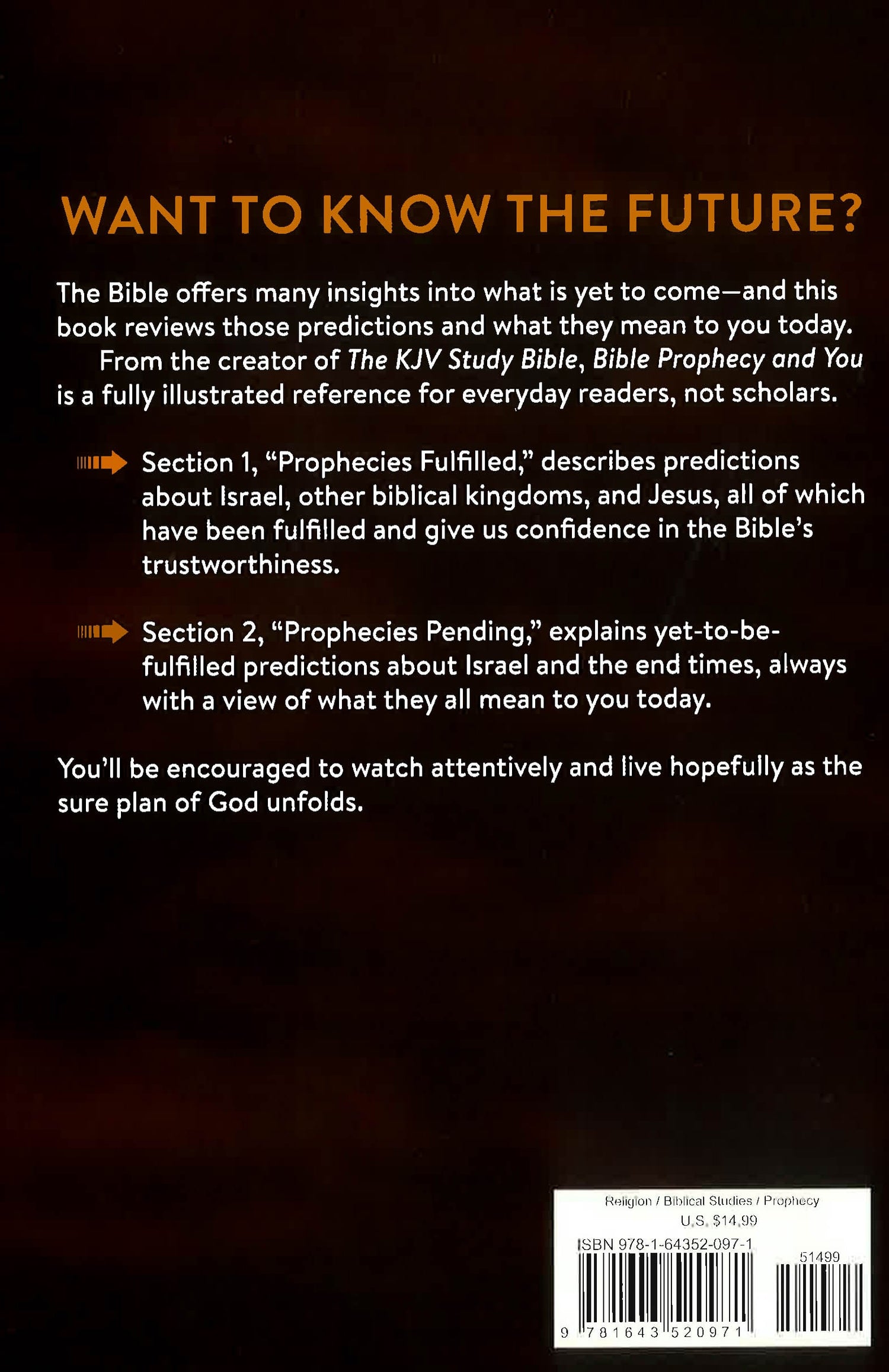 From the creator of The KJV Study Bible, Bible Prophecy and You is a fully illustrated reference for everyday readers, not scholars. The first section, "Prophecies Fulfilled," describes predictions about Israel, other biblical kingdoms, and Jesus, all of which have been fulfilled and give us confidence in the Bible's trustworthiness. The second section, "Prophecies Pending," explains yet-to-be-fulfilled predictions about Israel and the end times, always with a view to what they all mean to you today. You''ll be encouraged to watch attentively and live hopefully as the sure plan of God unfolds.