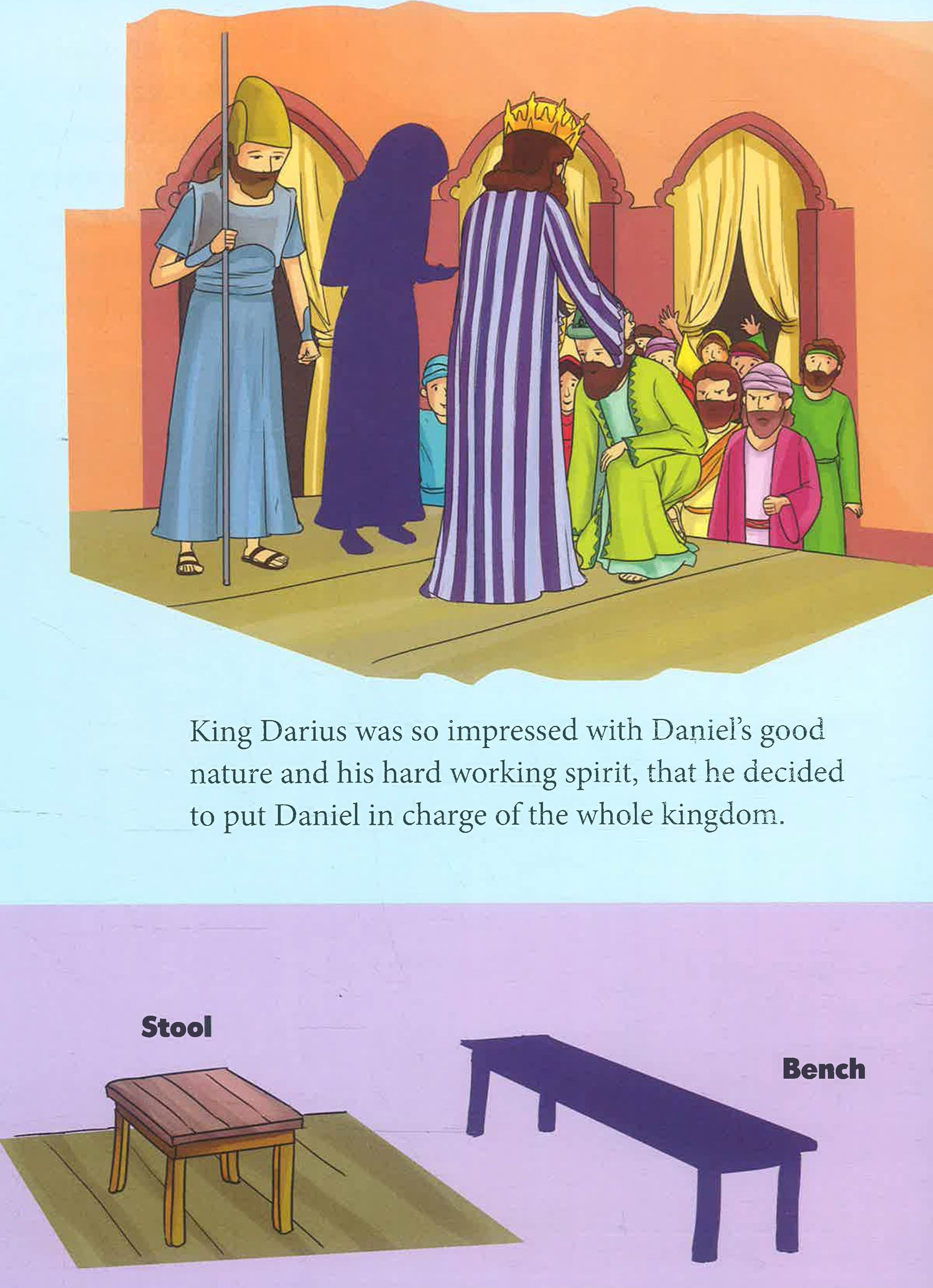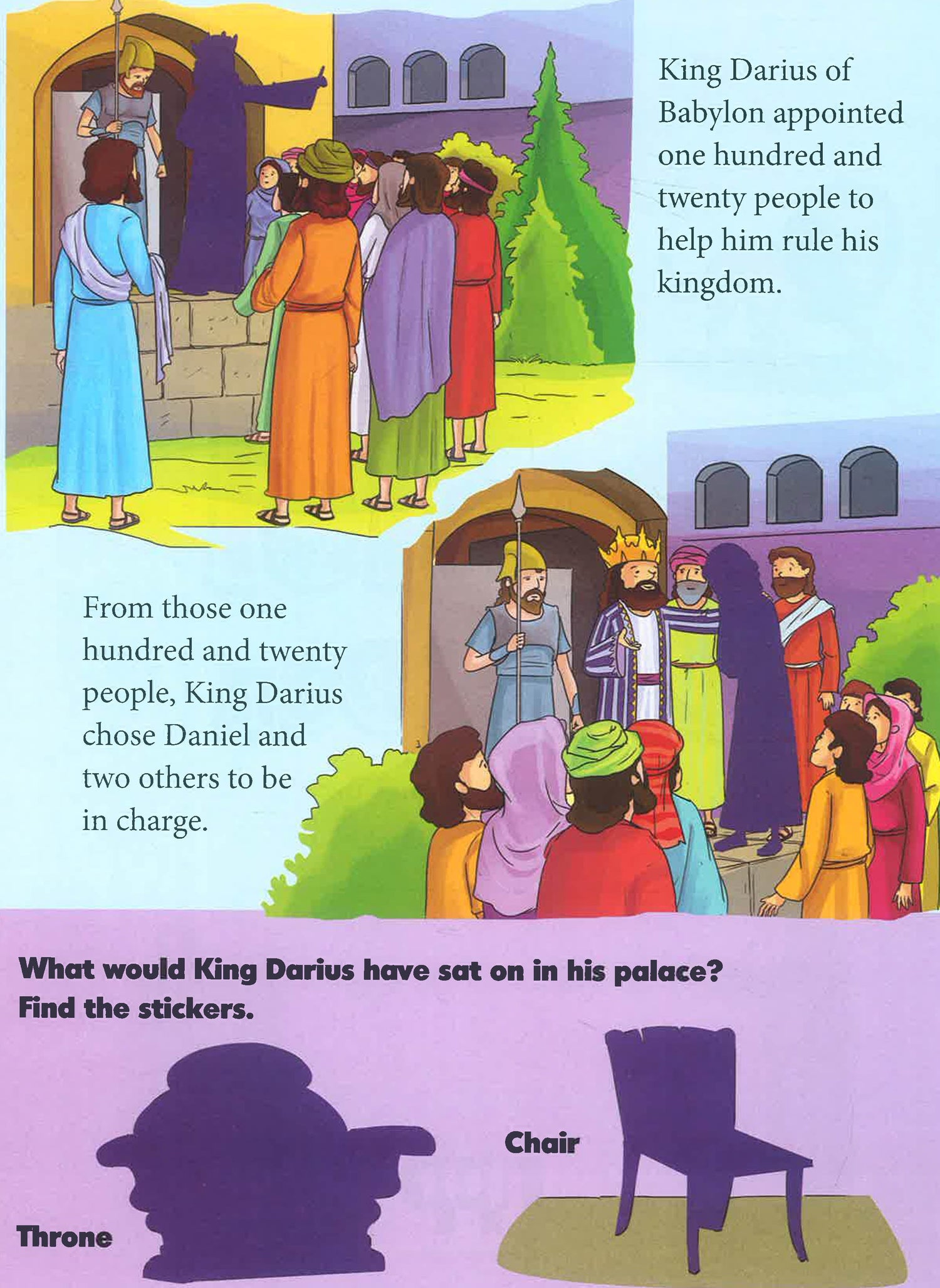 Enjoy the story of the Daniel In The Lions' Den with this fun and colourfully illustrated Bible Story Sticker Book.