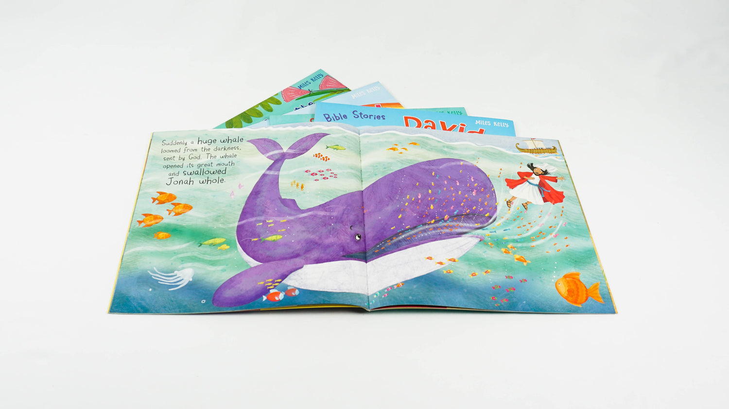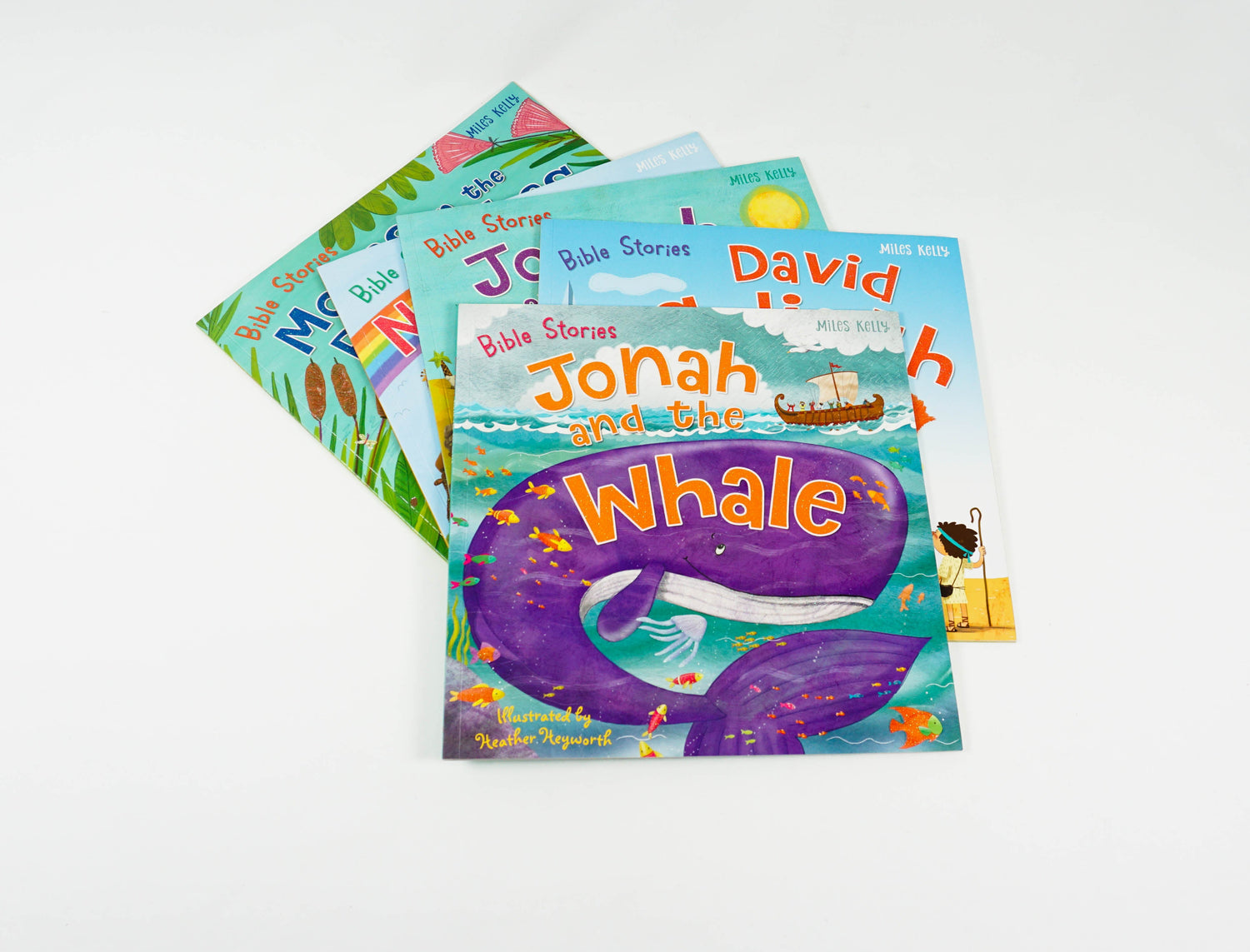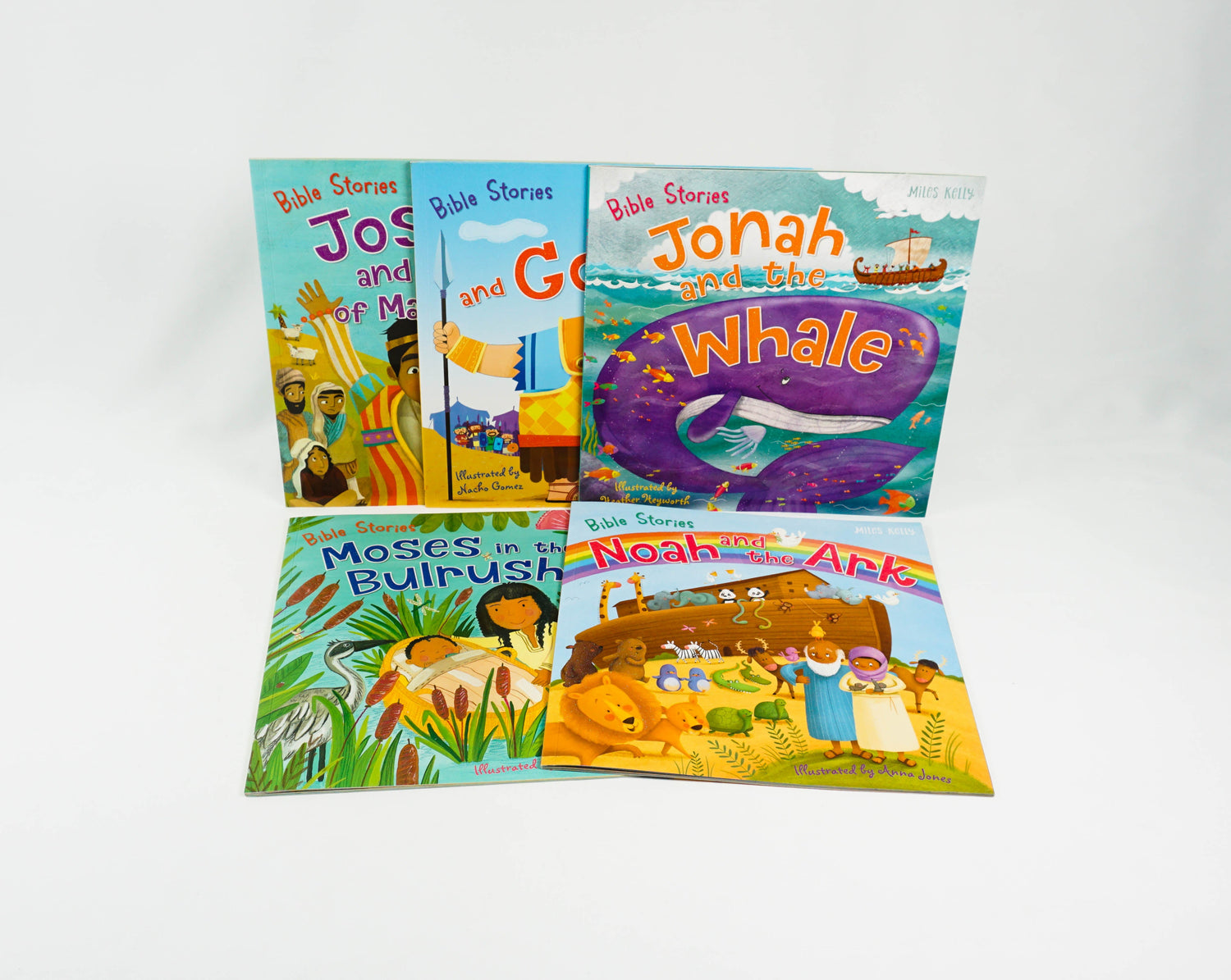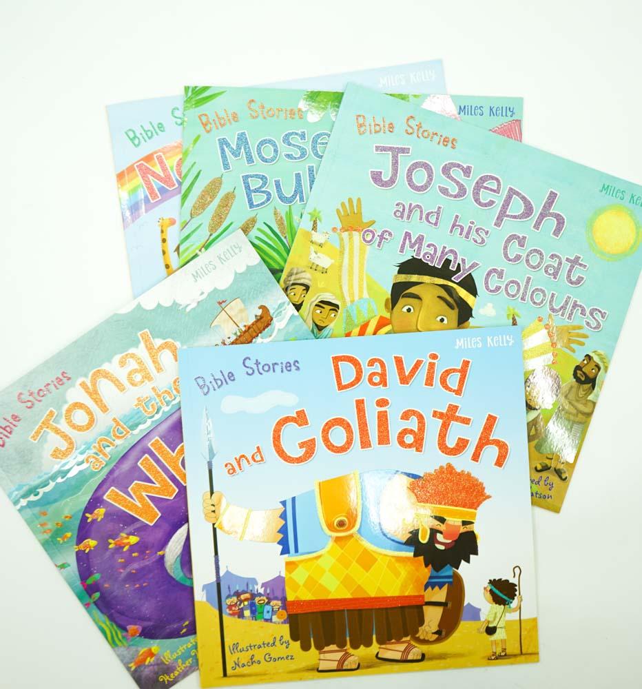 This Bible Stories 5-book Collection Bag contains five large format Bible picture books. Each book contains one entire story: Noah and the Ark, Joseph and his Coat of Many Colours, Moses in the Bulrushes, David and Goliath and Jonah and the Whale.