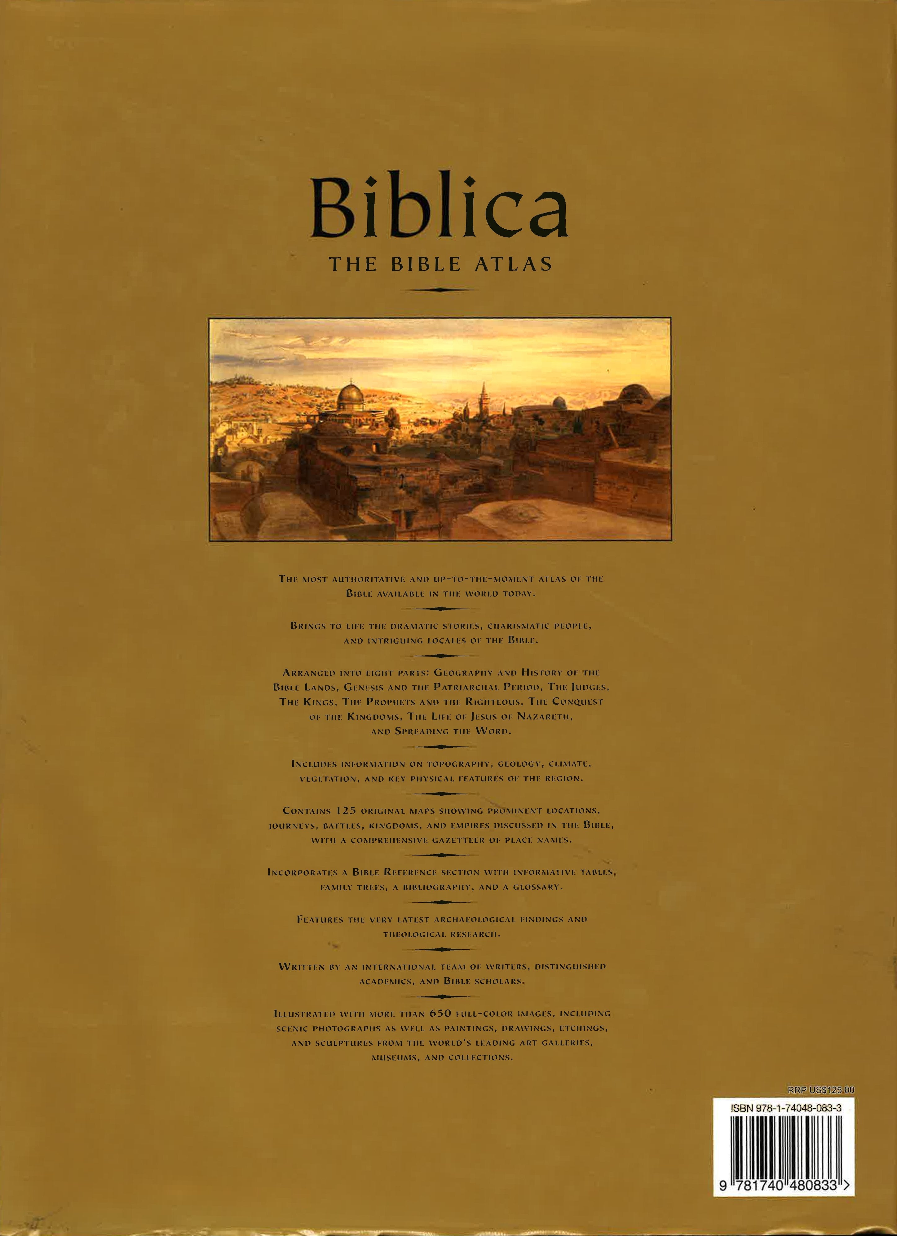 This authoritative, up-to-the moment atlas brings to life the dramatic stories, charismatic people, and intriguing locales of Scripture. It includes information on topography, geology, climate, vegetation, and key physical features of the region, and features 125 original maps, more than 650 full-color images, a bibliography, and a glossary. 575 pages, 10.25" x 13.25" x 2" hardcover from Global Book.