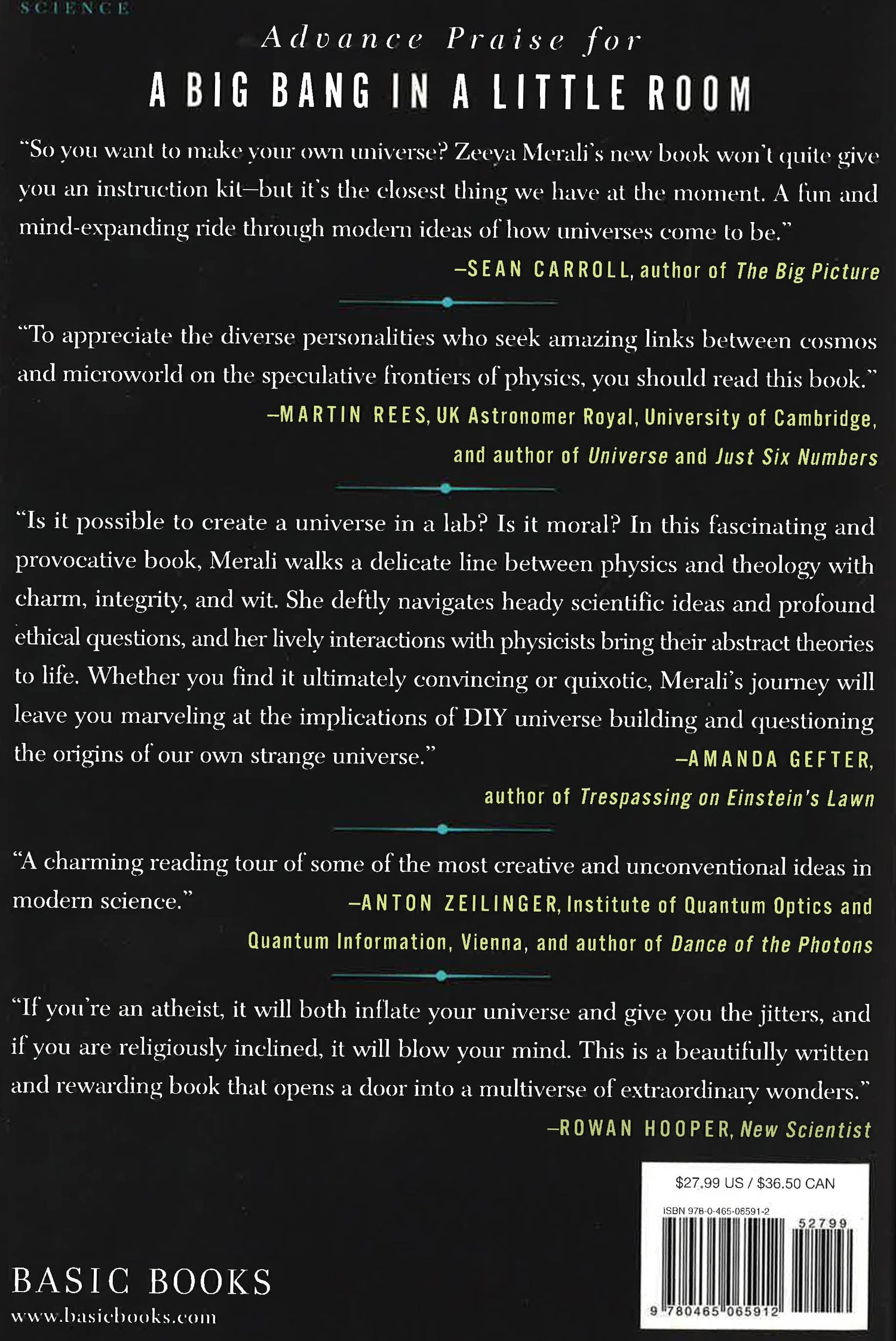 An award-winning science writer takes us into the lab to answer some of life's biggest questions: How was the universe created? And could we create our own?What if you could become God, with the ability to build a whole new universe? As startling as it sounds, modern physics suggests that within the next two decades, scientists may be able to perform this seemingly divine feat - to concoct an entirely new baby universe, complete with its own physical laws, star systems, galaxies, and even intelligent life. A Big Bang in a Little Room takes the reader on a journey through the history of cosmology and unravels-particle by particle, theory by theory, and experiment by experiment-the ideas behind this provocative claim made by some of the most respected physicists alive today. Beyond simply explaining the science, A Big Bang in a Little Room also tells the story of the people who have been laboring for more than thirty years to make this seemingly impossible dream a reality. What has driven them to continue on what would seem, at first glance, to be a quixotic quest?This mind-boggling book reveals that we can nurse other worlds in the tiny confines of a lab, raising a daunting prospect: Was our universe, too, brought into existence by a daring creator?