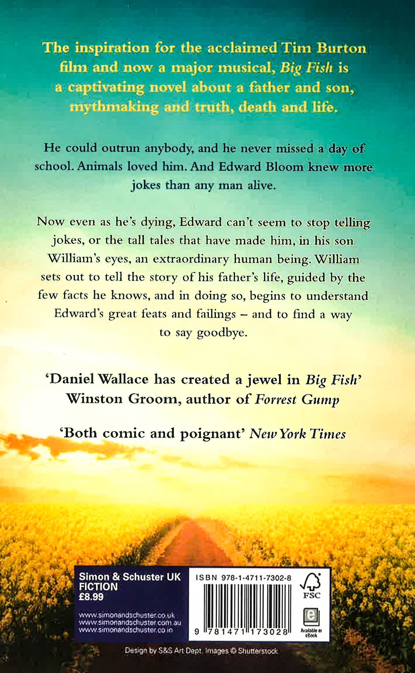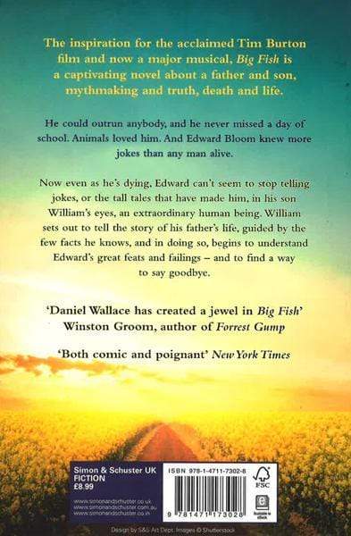 ** A MAJOR TIM BURTON FILM starring Ewan Mcgregor and Jessica Lange ** ** COMING SOON AS A MUSICAL starring Kelsey Grammer ** Do you ever really know your father? Like many sons, William Bloom never really knew his father. Edward told him stories too incredible to believe about his exploits as a younger man, but any attempt to find out serious truths have been met with laughter and brush-offs. And that never mattered. But now Edward is dying, suddenly it matters a great deal. So William sets out to tell his father's story, as he imagines it. He tames a giant, is dragged by an enormous fish through a lake and escapes a purgatory of lost dreams. Through legends and myths, William makes Edward into a true Big Fish. The much beloved book by Daniel Wallace is soon to be a Christmas musical at The Other Palace in London. Praise for Big Fish: 'Daniel Wallace has created a jewel in Big Fish' Winston Groom, author of Forrest Gump 'Both comic and poignant' New York Times 'An audacious, highly original debut novel. . . An imaginative, and moving, record of a son's love for a charming, unknowable father' Kirkus Reviews 'Refreshing, original. . . Wallace mixes the mundane and the mythical. His chapters have the transformative quality of fable and fairy tale' Publishers Weekly, starred review