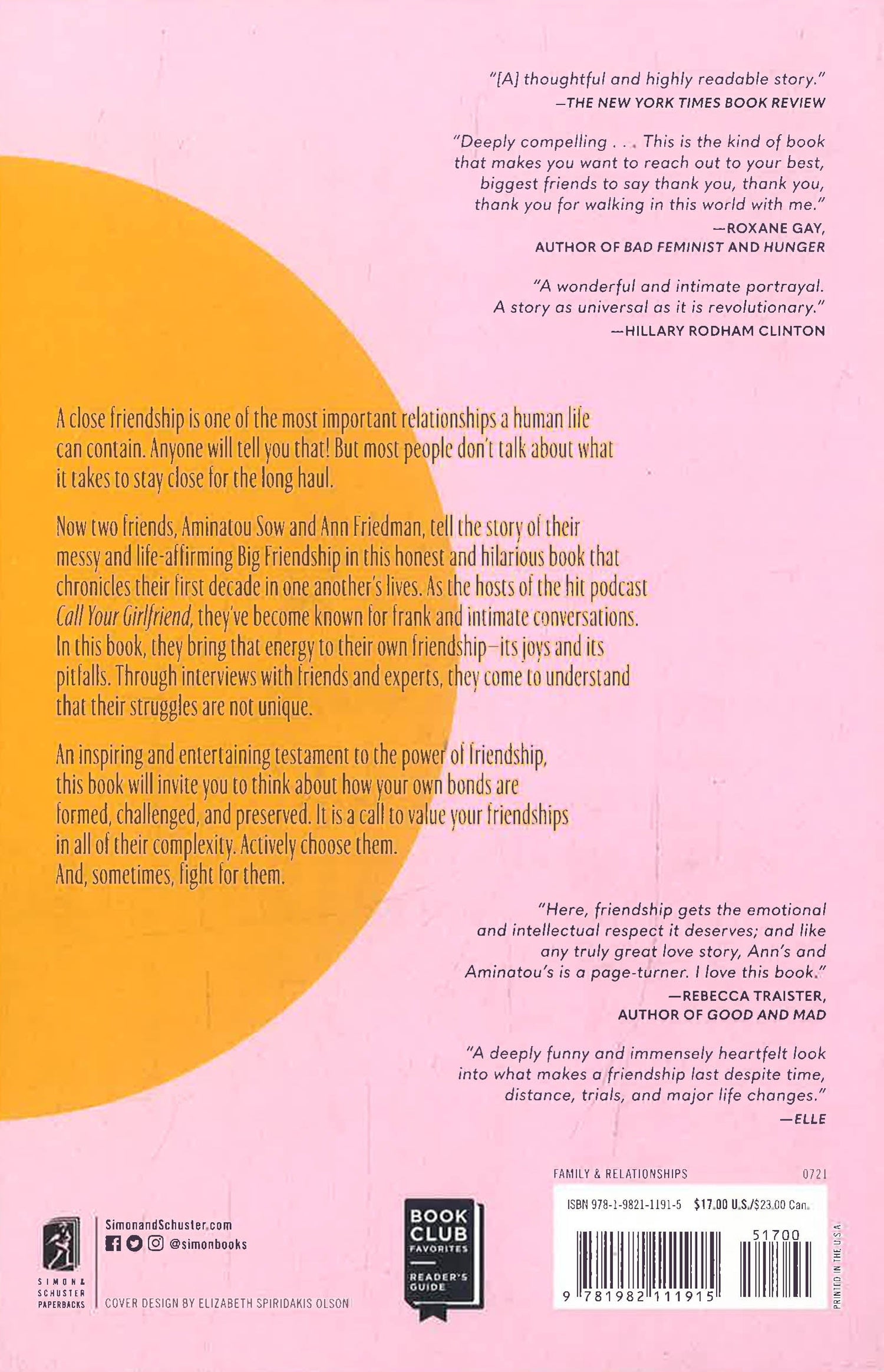 Aminatou and Ann define Big Friendship as a strong, significant bond that transcends life phases, geographical locations, and emotional shifts. And they should know: the two have had moments of charmed bliss and deep frustration, of profound connection and gut-wrenching alienation. They have weathered life-threatening health scares, getting fired from their dream jobs, and one unfortunate Thanksgiving dinner eaten in a car in a parking lot in Rancho Cucamonga. Through interviews with friends and experts, they have come to understand that their struggles are not unique. And that the most important part of a Big Friendship is making the decision to invest in one another again and again.