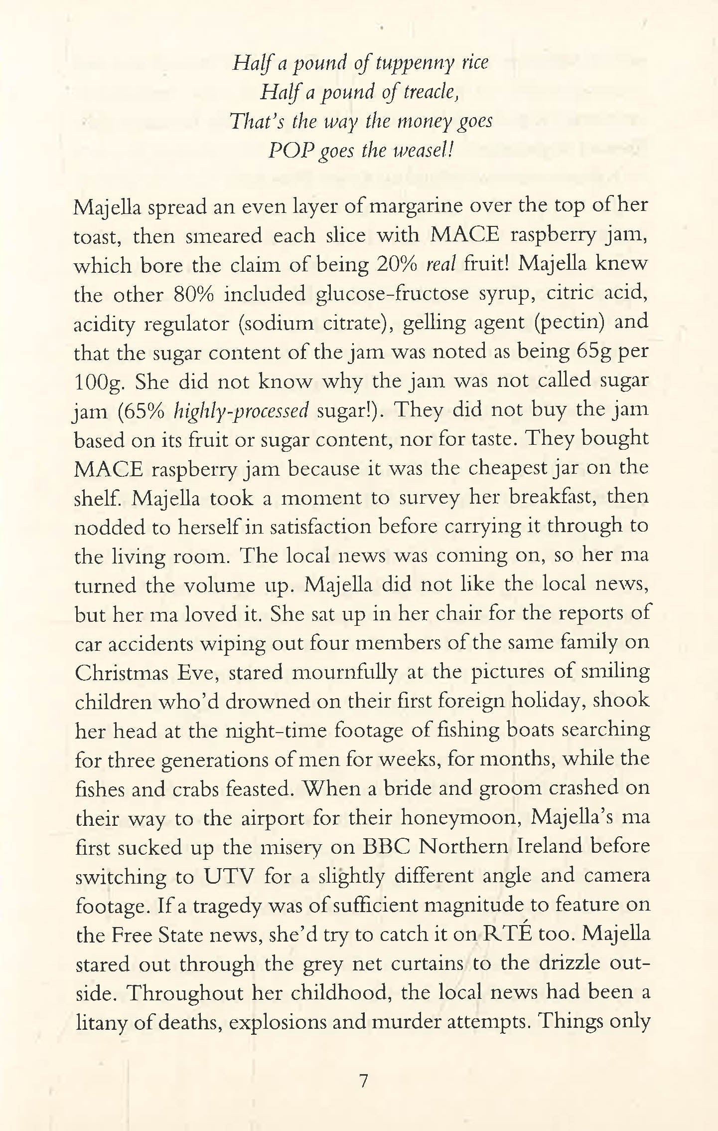 SHORTLISTED FOR THE COSTA FIRST NOVEL AWARDSHORTLISTED FOR THE IRISH BOOK AWARDS NEWCOMER OF THE YEARSHORTLISTED FOR THE COMEDY WOMEN IN PRINT PRIZELONGLISTED FOR THE ONDAATJE PRIZE'Milkman meets Derry Girls. A cracking read' Sinead Moriarty'A thrillingly fresh, provocative and touching voice' Marian Keyes'Bawdy yet beautiful, full of everyday tragedy, absurdity and truth. I grew extraordinarily attached to Majella' Sara Baume Routine makes Majella's world small but change is about to make it a whole lot bigger.*Stuff Majella knows*-God doesn't punish men with baldness for wearing ladies' knickers-Banana-flavoured condoms taste the same as nutrition shakes-Not everyone gets a volley of gunshots over their grave as they are being lowered into the ground*Stuff Majella doesn't know*-That she is autistic-Why her ma drinks-Where her da isOther people find Majella odd. She keeps herself to herself, she doesn't like gossip and she isn't interested in knowing her neighbours' business. But suddenly everyone in the small town in Northern Ireland where she grew up wants to know all about hers. Since her da disappeared during the Troubles, Majella has tried to live a quiet life with her alcoholic mother. She works in the local chip shop (Monday-Saturday, Sunday off), wears the same clothes every day (overalls, too small), has the same dinner each night (fish and chips, nuked in the microwave) and binge watches Dallas (the best show ever aired on TV) from the safety of her single bed. She has no friends and no boyfriend and Majella thinks things are better that way. But Majella's safe and predictable existence is shattered when her grandmother dies and as much as she wants things to go back to normal, Majella comes to realise that maybe there is more to life. And it might just be that from tragedy comes Majella's one chance at escape.'It's a smasher' Kathy Burke