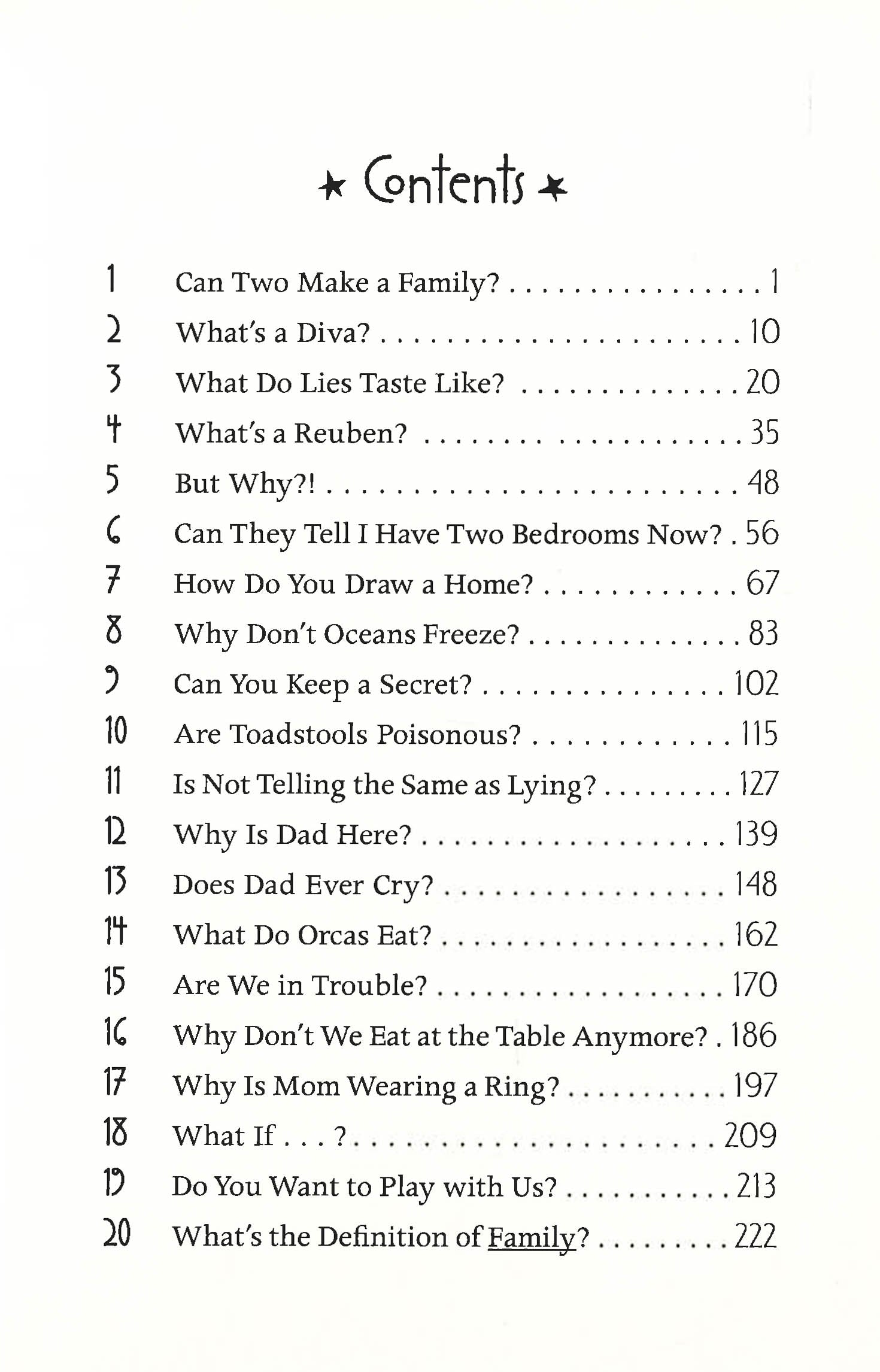 It’s the start of a new school year and Wren Jo Byrd is worried that everyone will find out her parents separated over the summer. No one knows the truth, not even her best friend, Amber. When even her new teacher refers to her mom as Mrs. Byrd, Wren decides to keep their divorce a total secret. But something else changed over the summer: A new girl named Marianna moved to town and wants to be Amber’s next bff. And because of her fib, Wren can’t do anything about it. From take-out dinners with Mom to the tiny room she gets at Dad’s new place, nothing is the same for Wren anymore. But while Marianna makes everything harder at first, Wren soon learns that Marianna once had to ask many of the same questions—the big ones, as well as the little ones—that Wren is asking now.