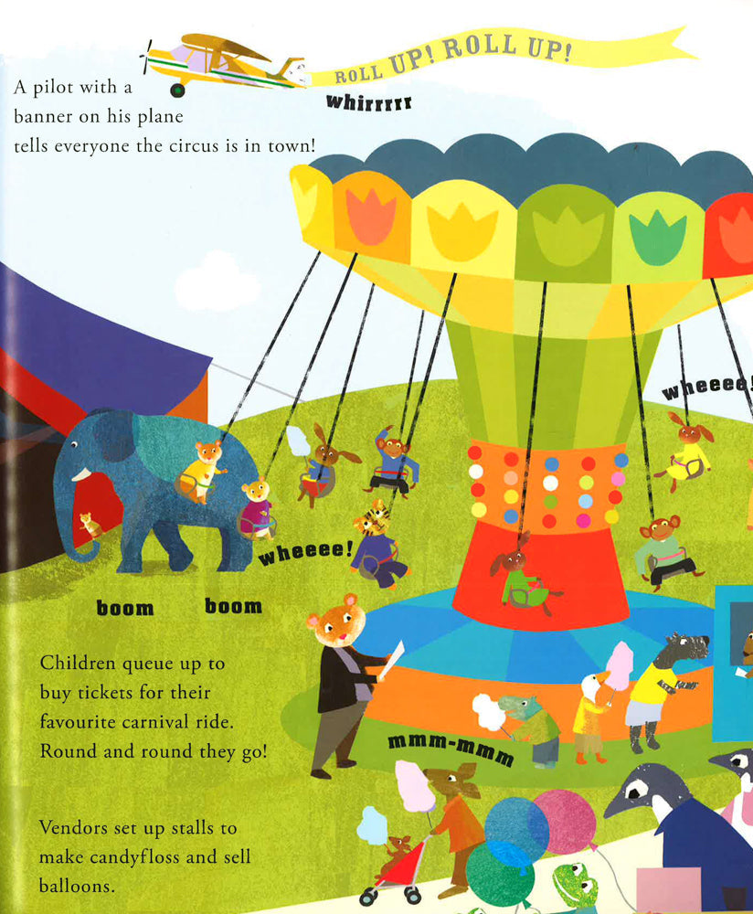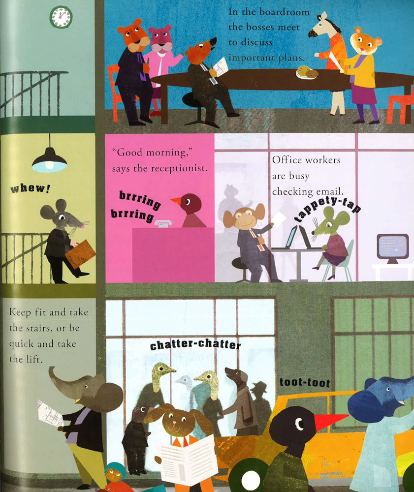 This bright and bold book is bursting with busy places. Each of the 16 colourful spreads explores a different environment where we work and play, from the hospital to the circus and the farm to the funfair. Hundreds of animals sing, dance, repair, build, swim and much, much more. With entertaining, informative text and a large format for sharing, this book is perfect for reading aloud.