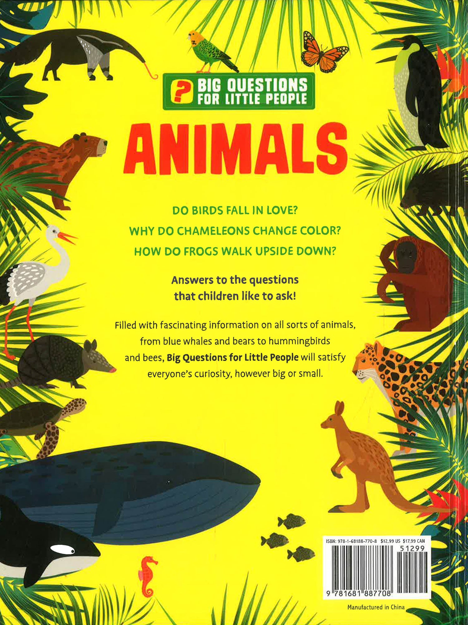 Filled with fascinating information on all sorts of animals, from blue whales and bears to hummingbirds and bees, Big Questions for Little People Animals will satisfy everyone’s curiosity, however big or small.