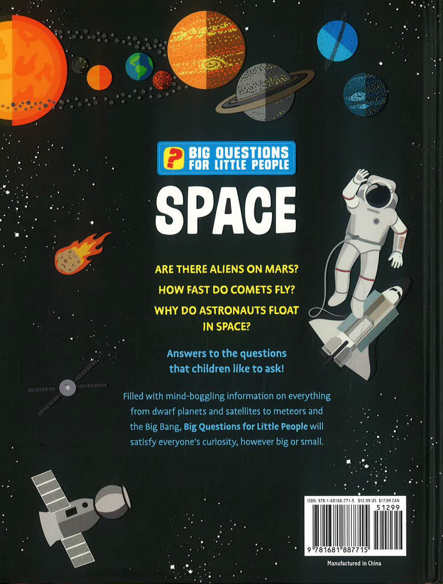 Filled with mind-boggling information on everything from dwarf planets and satellites to meteors and the Big Bang, Big Questions for Little People Space will satisfy everyone’s curiosity, however big or small.