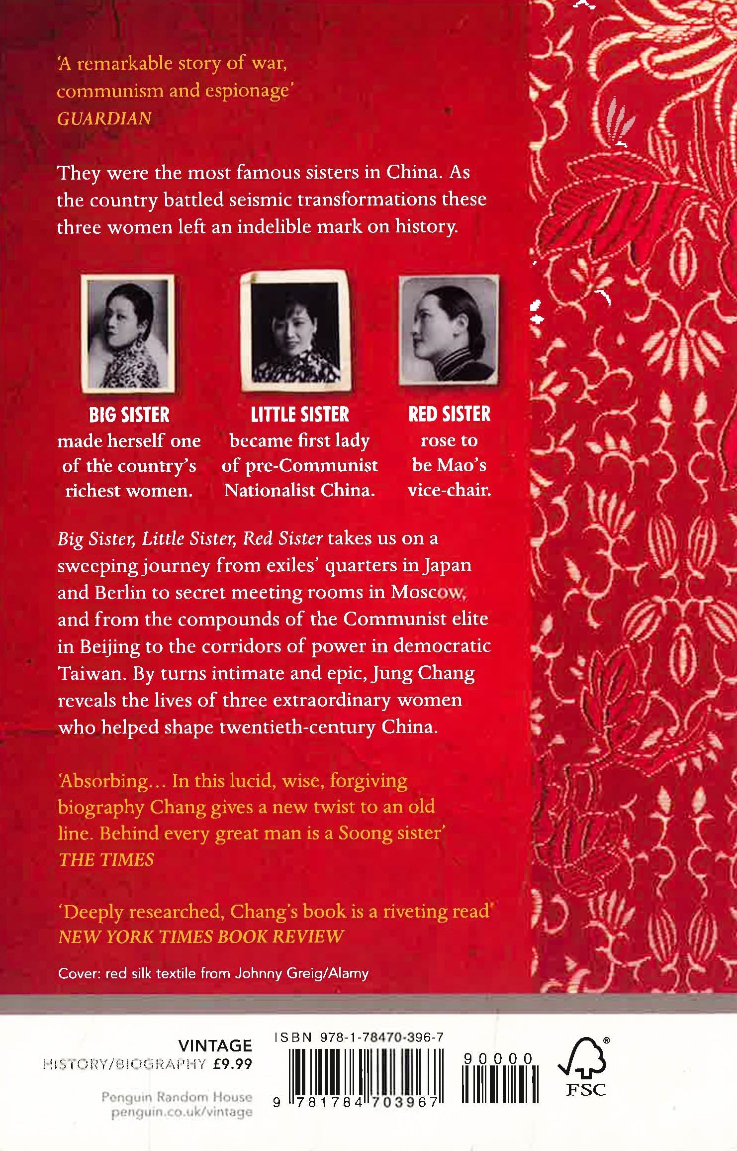 *SHORTLISTED FOR THE HWA NON-FICTION CROWN 2020*Meet the three women who helped shape the course of modern Chinese history; a gripping story of sisterhood and betrayal from the bestselling author of Wild Swans.They were the most famous sisters in China. As the country battled seismic transformations these three women left an indelible mark on history. Red Sister rose to be Mao's vice-chair. Little Sister became first lady of pre-Communist Nationalist China. Big Sister made herself one of country's richest women. Big Sister, Little Sister, Red Sister takes us on a sweeping journey from exiles' quarters in Japan and Berlin to secret meeting rooms in Moscow, and from the compounds of the Communist elite in Beijing to the corridors of power in democratic Taiwan. By turns intimate and epic, Jung Chang reveals the lives of three extraordinary women who helped shape twentieth-century China.