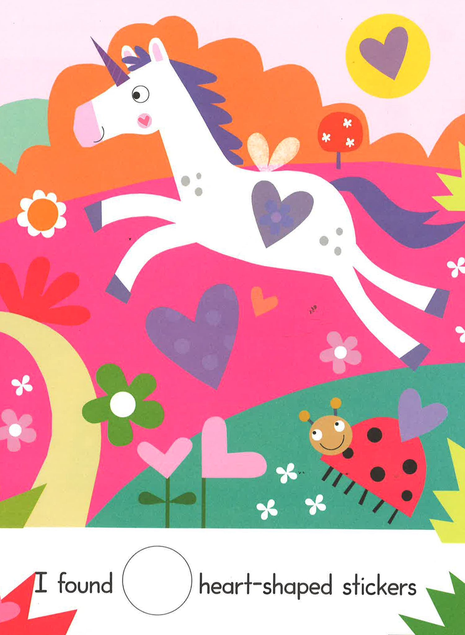 This bold and colourful sticker book includes scenes with ghosted pictures for young children to match with big stickers. There is also a simple counting game on every page, with a sticker to find. Encourages matching, counting, visual thinking and fine motor skills.