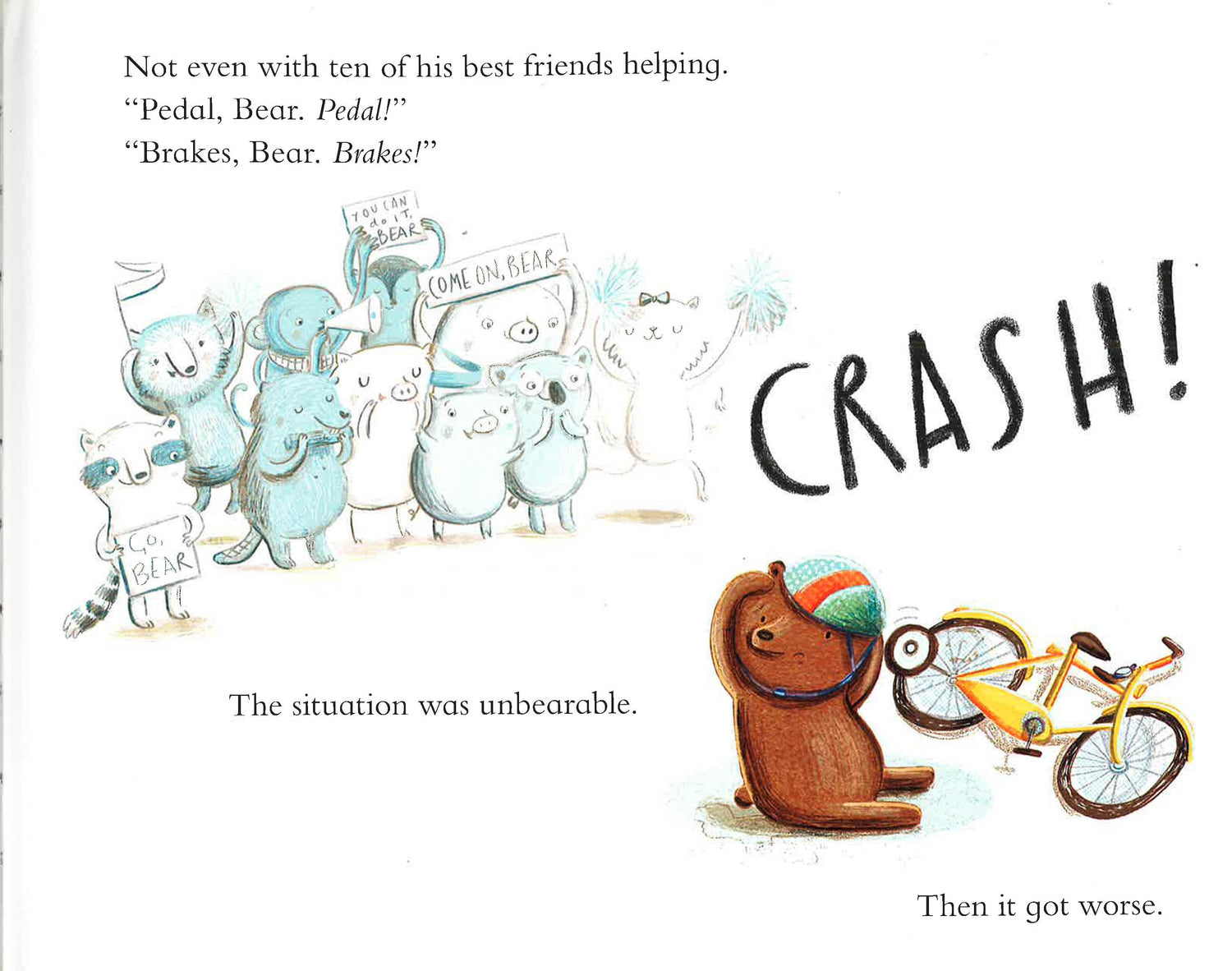 Bear can do almost anything. His one-paw pawstand is perfection. He can solve the trickiest of equations. He can even out-build a brigade of beavers. But the one thing Bear can't do? Ride a bike. Bear tries everything to help him learn: library books, training wheels and super-cheers from his fellow animal friends. But all of those fail to get poor Bear on two wheels.The situation is looking unbearable - but an unexpected mishap might be just the thing that propels Bear to bike on!