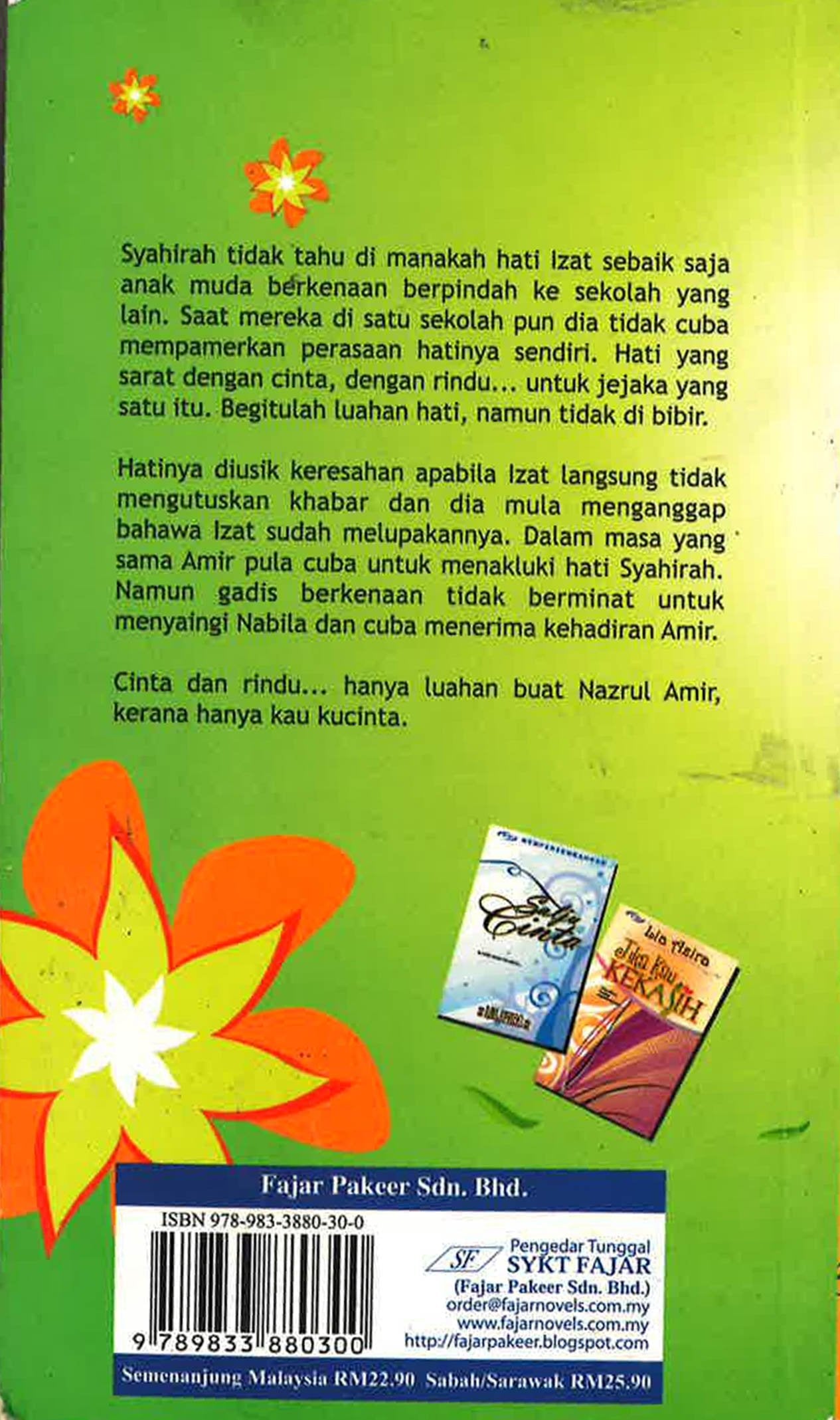 Syahirah tidak tahu di manakah hati Izat sebaik saja anak muda berkenaan berpindah ke sekolah yang lain. Saat mereka di satu sekolah pun dia tidak cuba mempamerkan perasaan hatinya sendiri. hati yang sarat dengan cinta,dengan rindu...untuk jejaka yang satu itu. Begilah luahan hati,namun tidak di bibir.