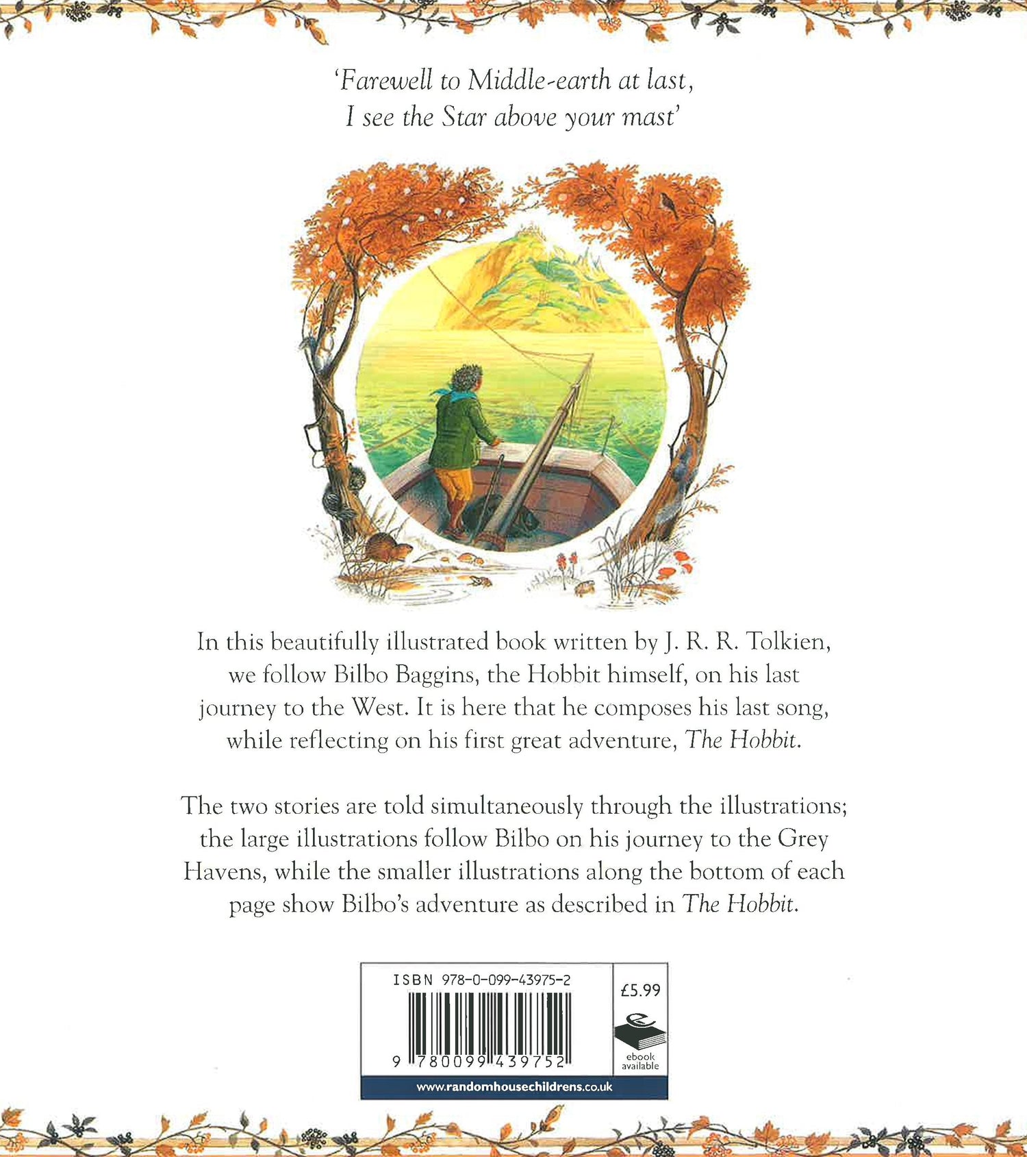 While Bilbo embarks on his last journey to the West, his mind is cast back to his first big adventure, THE HOBBIT. J.R.R TOLKIEN's beautiful poem is bought to life through Pauline Bayne's stunning illustrations. It's the perfect introduction to the epic fantasy series of THE HOBBIT and THE LORD OF THE RINGS for younger readers, and a real treat for all Tolkien fans. Baynes' illustrations have been fully restored in this fantastic new edition, which is published to coincide with the film release of THE HOBBIT in autumn 2012.