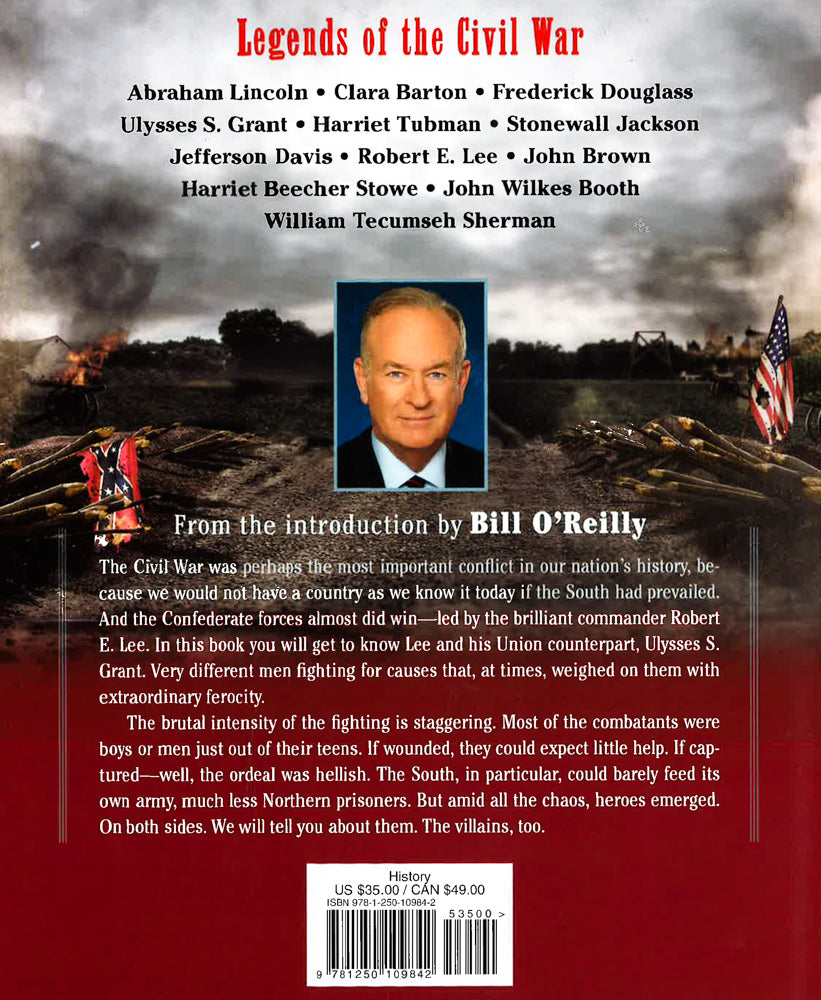 From the birth of the Republican Party to the Confederacy's first convention, the Underground Railroad to the Emancipation Proclamation, the Battle of Gettysburg to the assassination of Abraham Lincoln, Bill O'Reilly's Legends and Lies: The Civil War reveals the amazing and often little known stories behind the battle lines of America's bloodiest war and debunks the myths that surround its greatest figures, including Harriet Tubman, Abraham Lincoln, General Robert E. Lee, Frederick Douglass, Stonewall Jackson, John Singleton Mosby, Ulysses S. Grant, Jefferson Davis, John Wilkes Booth, WilliamTecumseh Sherman, and more. An epic struggle between the past and future, the Civil War sought to fulfill the promise that "all men are created equal." It freed an enslaved race, decimated a generation of young men, ushered in a new era of brutality in war, and created modern America. Featuring archival images, eyewitness accounts, and beautiful artwork that further brings the history to life, The Civil War is the action-packed and ultimate follow-up to the #1 bestsellers The Patriots and The Real West.